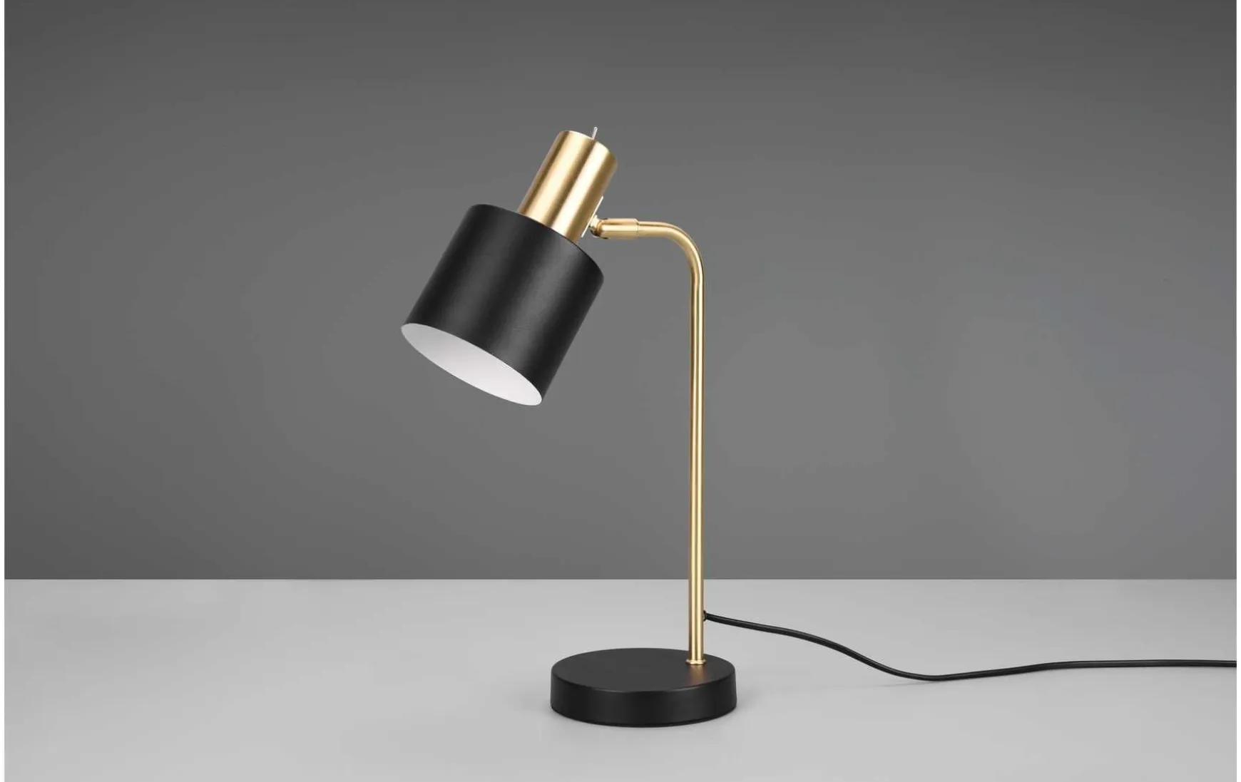 Die klaren Linien und das reduzierte Design der Tischleuchte bringt ein ruhiges und harmonisches Umfeld in Ihr Zuhause. Als Leselicht auf dem Schreibtisch oder als Akzentlicht auf Ihrer Kommode tritt das Licht in den Fokus und spendet stimmungsvolle Akzente. Durch den Schalter am Leuchtenkopf ist ein bequemes Ein- und Ausschalten gewährleistet. Die Farbkombination der Leuchte in Schwarz matt und Messing matt zaubert einen Hauch von Anmut in Ihren Wohnbereich. Für eine energiesparende Beleuchtung empfiehlt sich die Verwendung eines LED Leuchtmittels. Diese sind eine optimale Alternative zu herkömmlichen Halogen Leuchtmitteln und stehen für eine hohe Lichtqualität und eine Energieeinsparung von bis zu 80%. Zusätzlich profitieren Sie bei LED Leuchtmitteln von einer langen Lebensdauer, einer geringen Wärmeentwicklung und schonen gleichzeitig die Umwelt.
