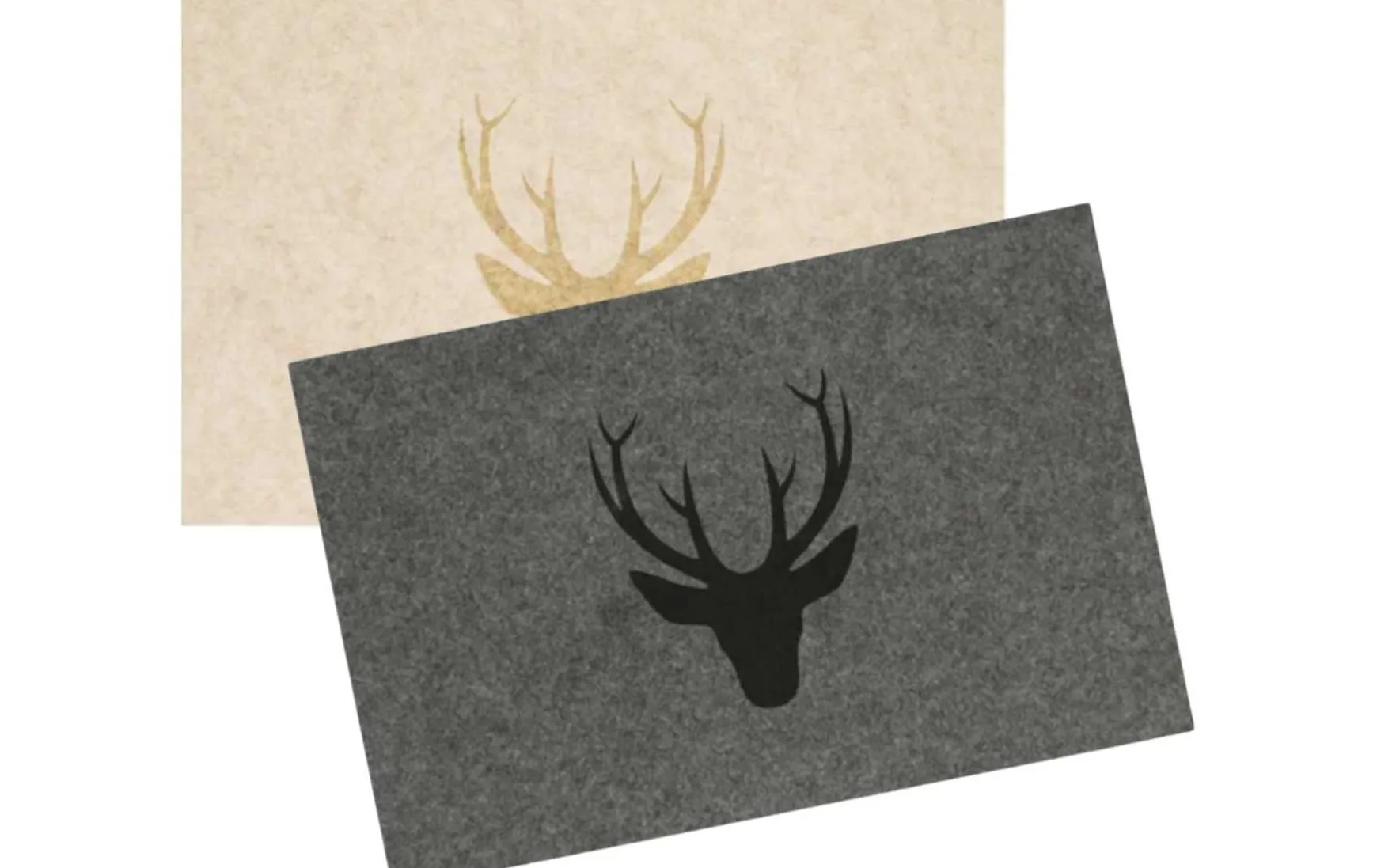 Orginelles Tischset aus Filz mit einem Hirschaufdruck.
