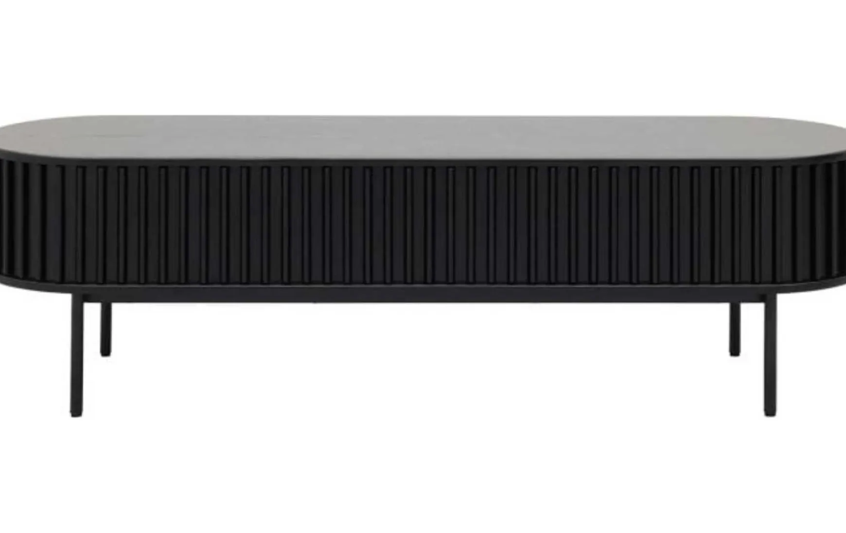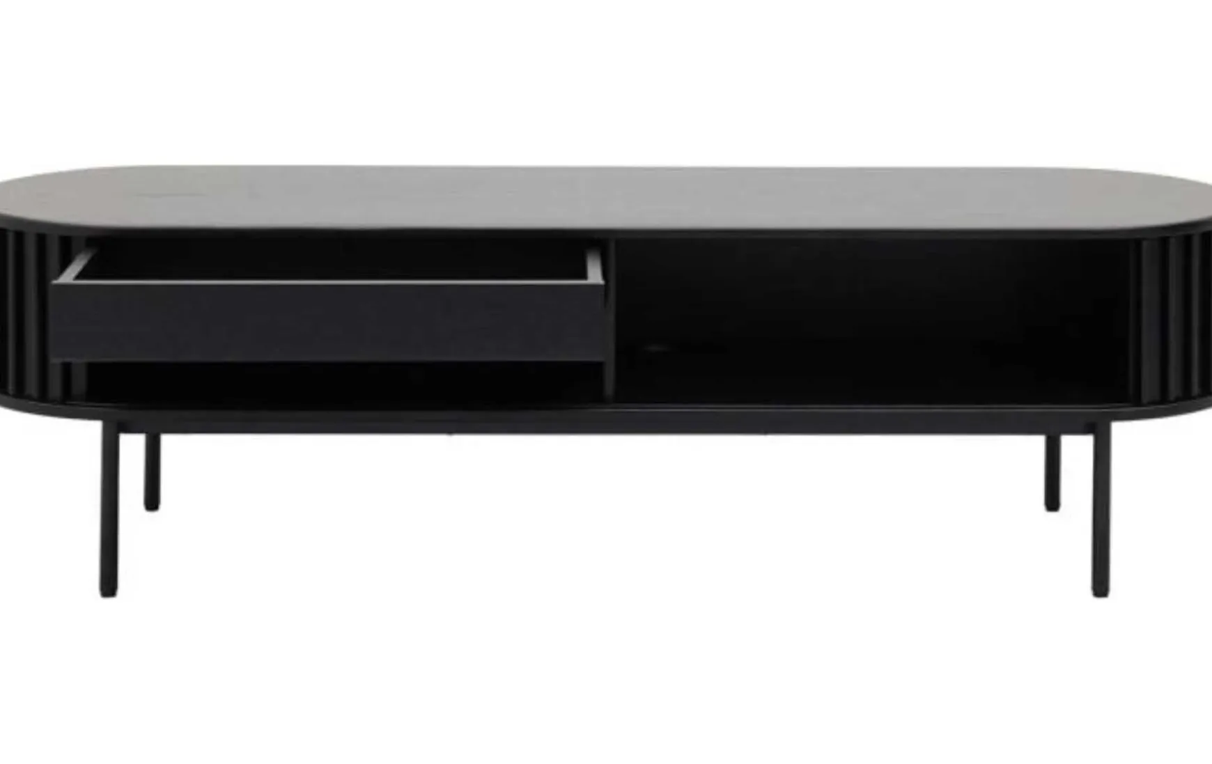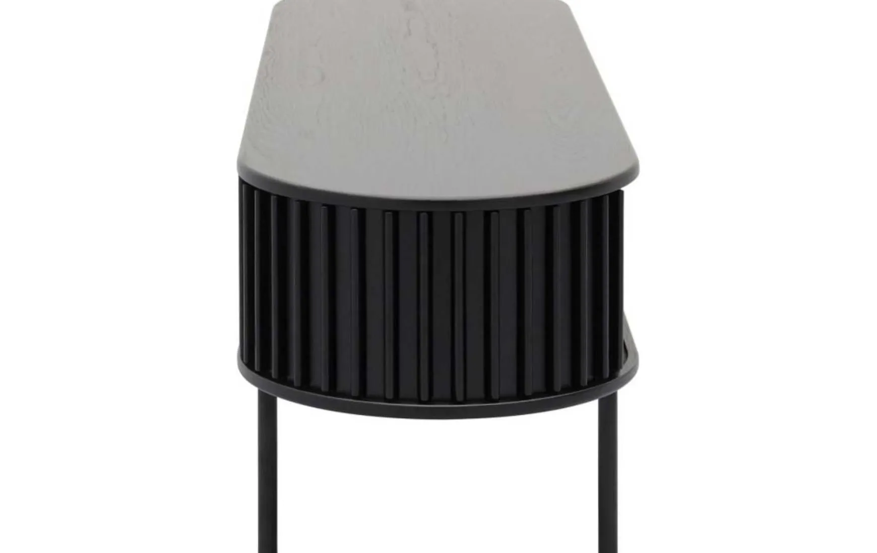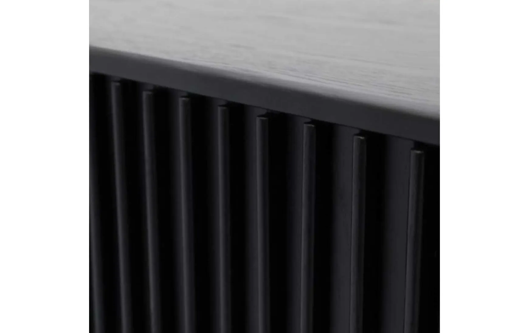 Ihr neuer TV-Schrank, wenn Sie modernes Design mögen. Mit einer Größe von 160x48x45 cm bietet diese Schönheit ausreichend Platz für Ihren Fernseher, Ihre Lieblings-Gadgets und attraktive Deko. Das lackierte Eichenfurnier strahlt pure Eleganz aus, während die schwarzen Metallbeine für eine stabile Basis sorgen. Und diese schwarze Farbe? Schön und zeitlos! Die Rippen verleihen Susa zudem einen verspielten Look.