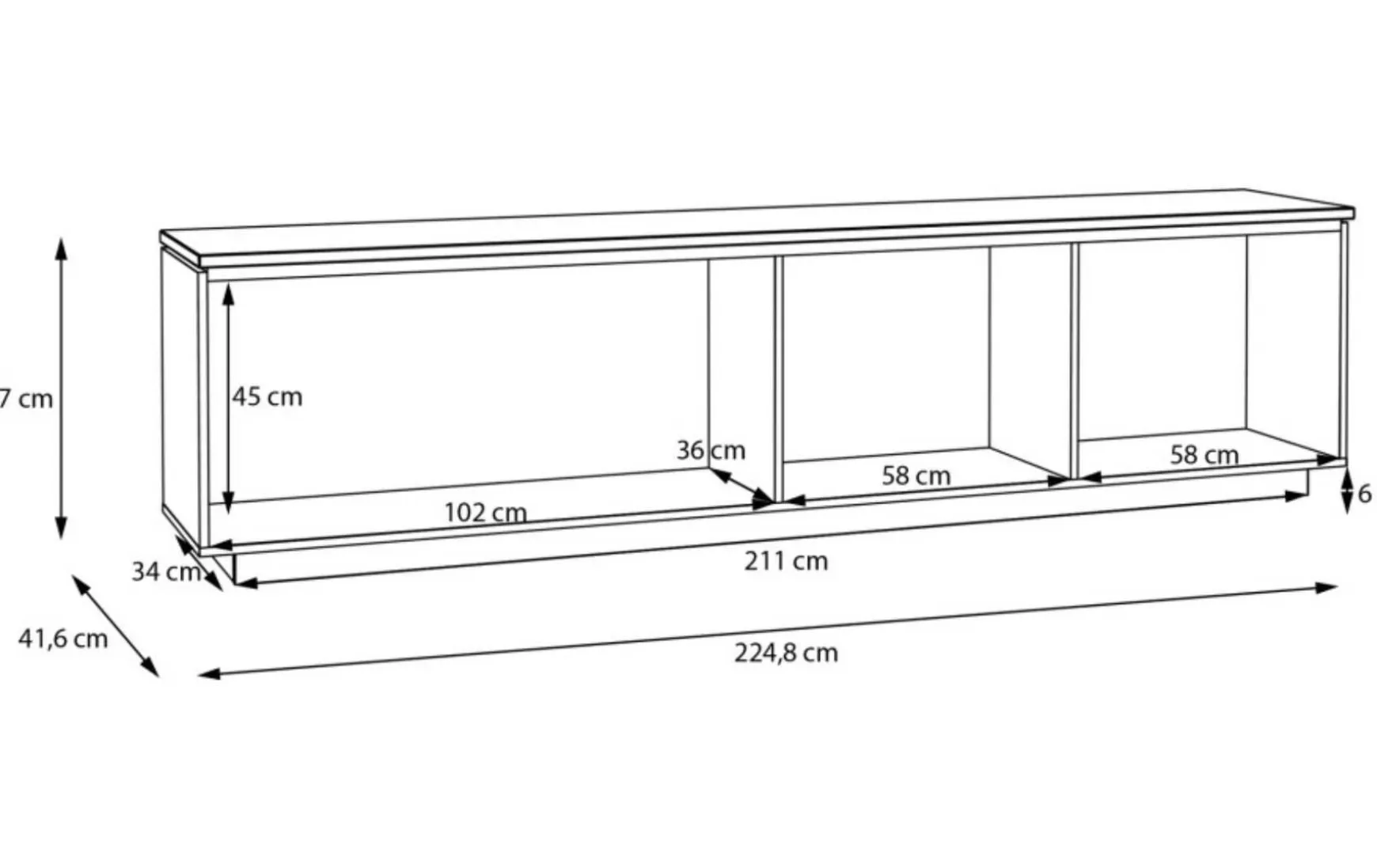 - Breites Lowboard mit schwebender Optik