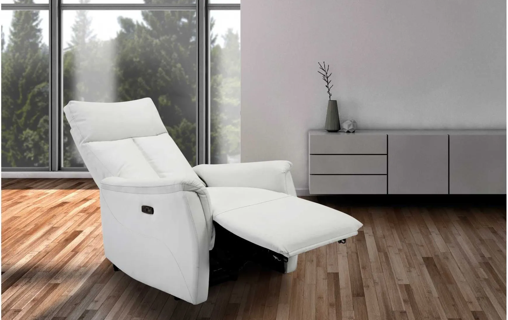 Moderner TV Sessel in Stoffbezug / Lederoptik, Farbe weiss, 1-motorisch mit Relaxfunktion per einfachem Knopfdruck.