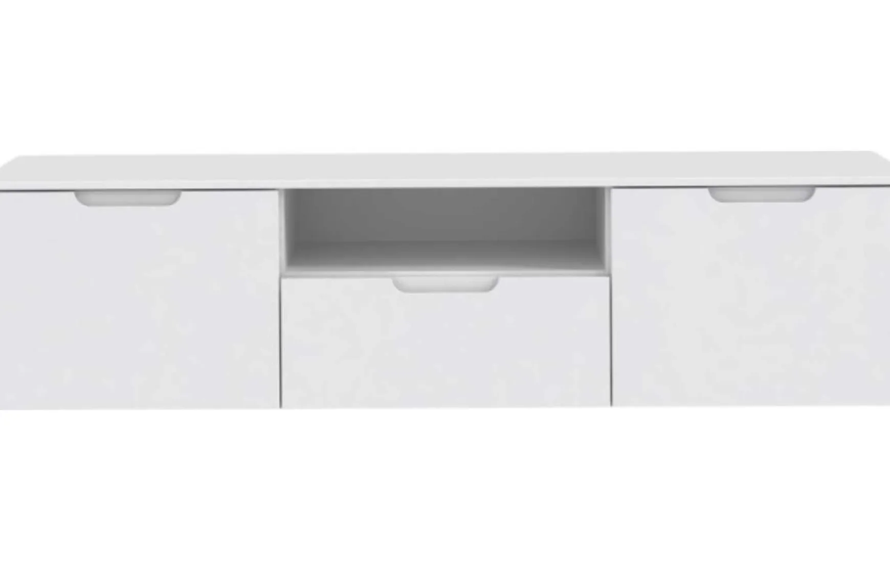 Dieses TV-Lowboard überzeugt durch das überragende Design und mit Fronten in Weiß Hochglanz. Die speziell behandelten Oberflächen dieses Möbels sind besonders pflegeleicht. Die praktischen und gleichzeitig unauffälligen Griffmulden ermöglichen ein einfaches öffnen der Türen.