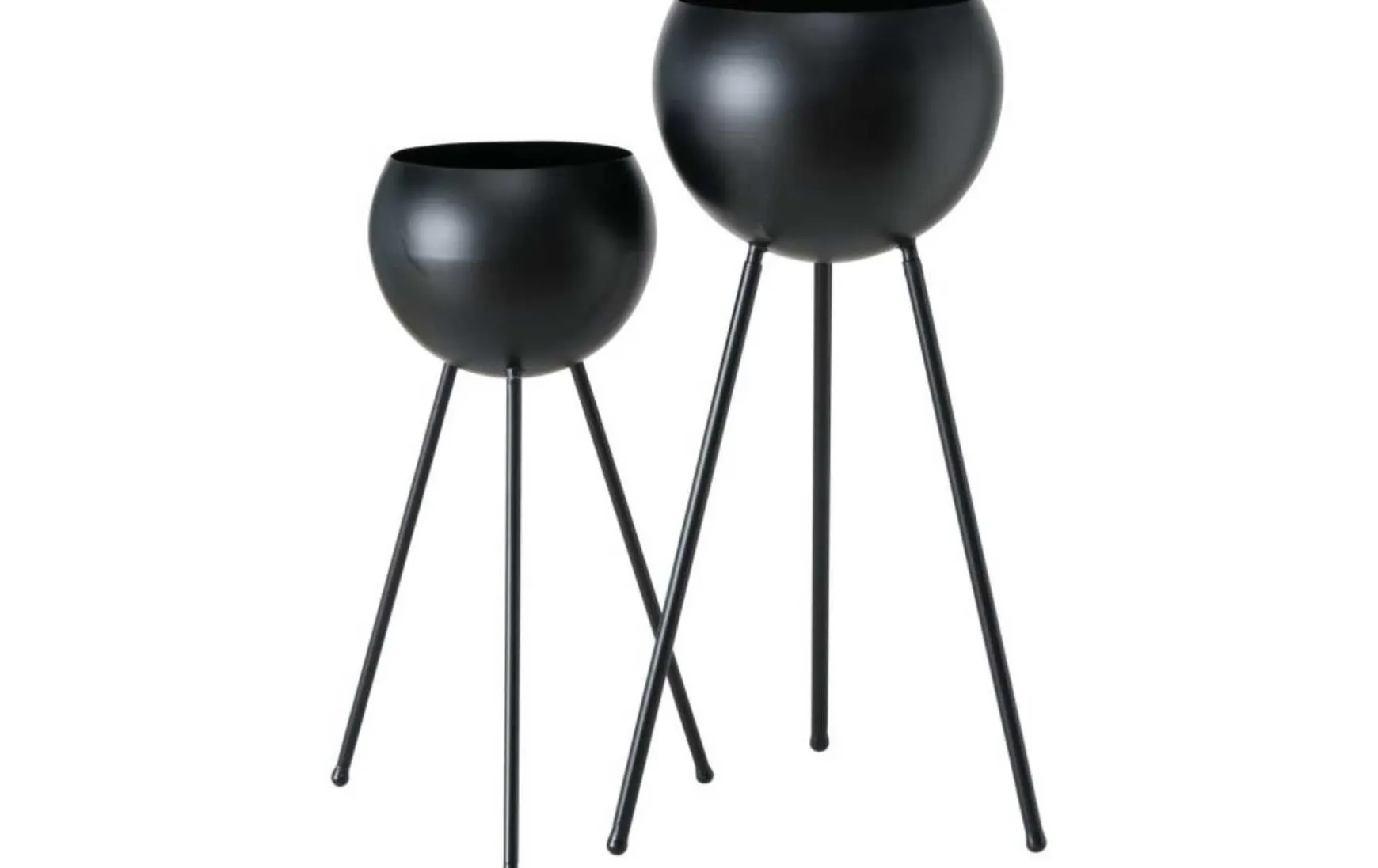 Dieser Pflanztopf in matt schwarz lackiertem Metall ist an das Design der 70er angelehnt. Die 3 ausgestellten Beine halten eine runde Pflanzschale – simpel und schön!