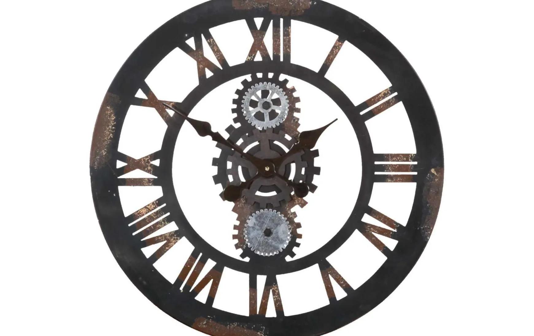 Diese Wanduhr im angesagten Industrial-Style setzt ein markantes Statement in Ihrem Wohnraum. Das robuste Metallgehäuse in Rost-Schwarz und die dekorative Räderwerk-Optik verleihen der Uhr einen authentischen Loft-Charakter. Mit einem Durchmesser von ca. 59 cm eignet sie sich ideal als Blickfang für Wohnzimmer, Küche oder Büro. Die hochwertige Verarbeitung und das außergewöhnliche Design machen diese Uhr zu einem stilvollen Wohnaccessoire mit Charakter.