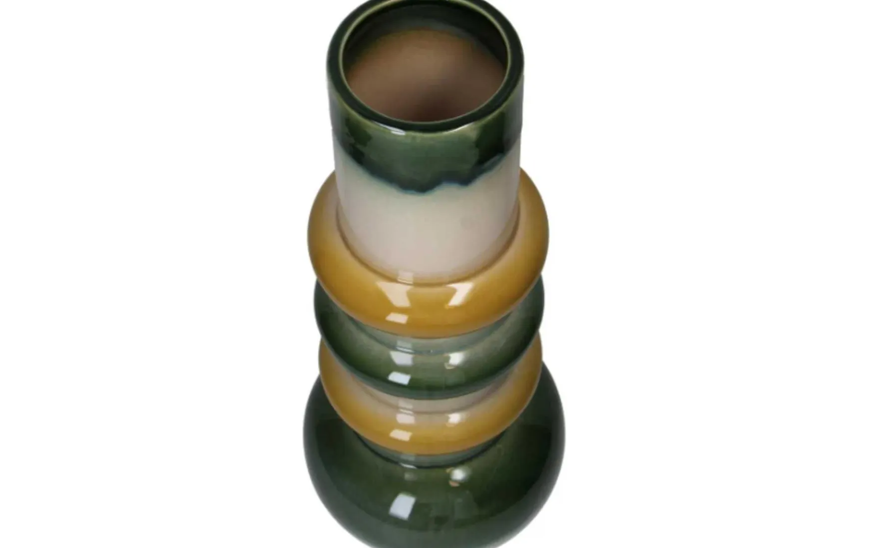 Mit ihrer kreativen Formgebung und ihrem geschmeidigem Farbverlauf ist diese Vase in jedem Raum und in jedem Einrichtungsstil ein dekorativer Höhepunkt. Sie verbindet auf geschickte Weise die Farben, Grün, Weiß und Gelb und verkörpert moderne Eleganz.