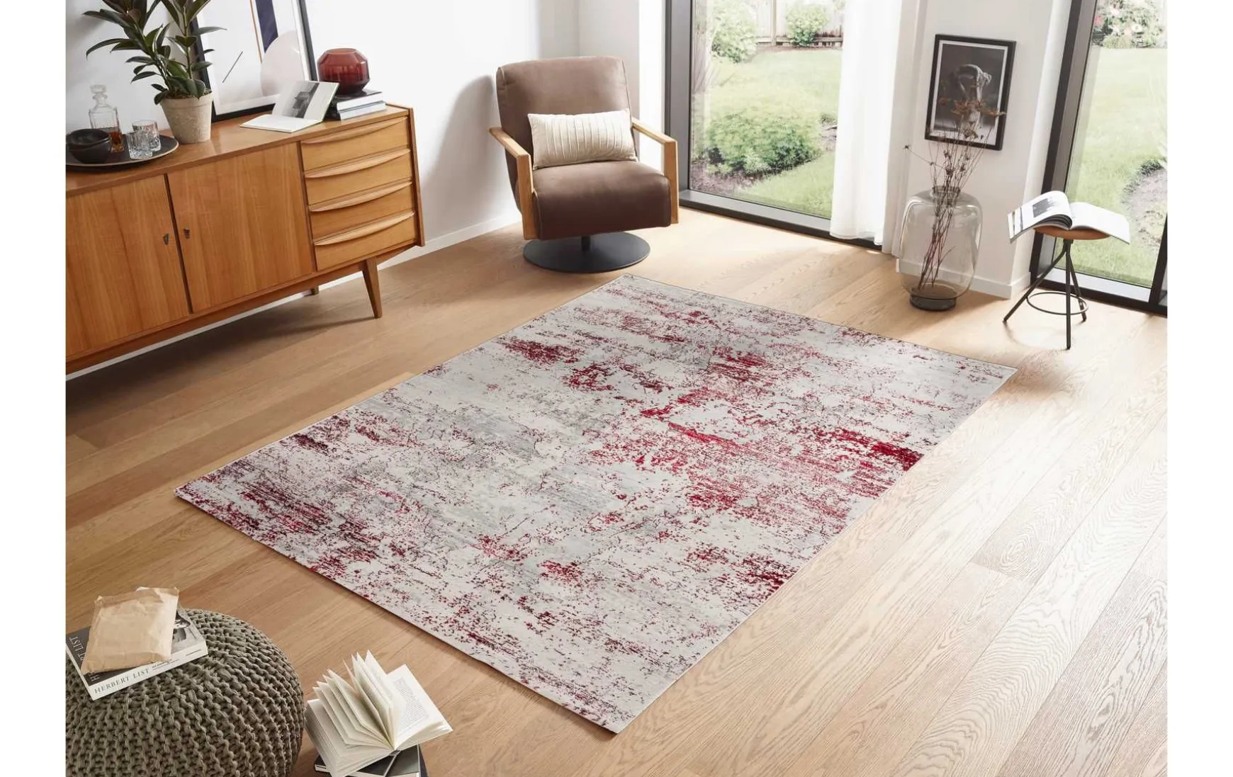 Dieser gemusterte creme-rote Veloursteppich aus 70% Polyester und 30% Polypropylen vereint Stil und Funktionalität. Mit seiner Fußbodenheizungstauglichkeit sorgt er für wohlige Wärme und Gemütlichkeit. Das Material ist antistatisch und pflegeleicht, wodurch Sie mühelos einen gepflegten Look bewahren können. Der Teppich bringt nicht nur eine beruhigende Farbpalette in Ihre Räume, sondern auch Komfort und Langlebigkeit.