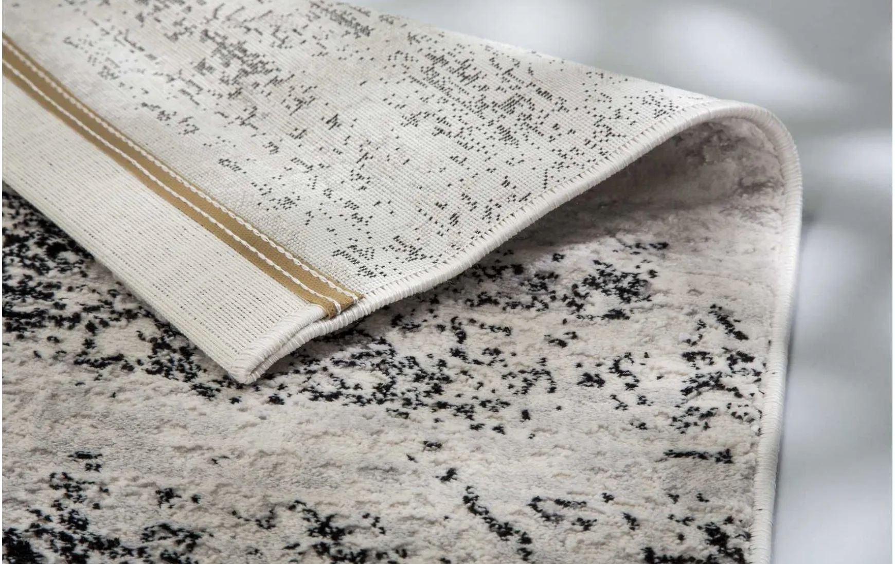 Dieser gemusterte, creme-schwarze Veloursteppich aus 70% Polyester und 30% Polypropylen vereint Stil und Funktionalität. Mit seiner Fußbodenheizungstauglichkeit sorgt er für wohlige Wärme und Gemütlichkeit. Das Material ist antistatisch und pflegeleicht, wodurch Sie mühelos einen gepflegten Look bewahren können. Der Teppich bringt nicht nur eine beruhigende Farbpalette in Ihre Räume, sondern auch Komfort und Langlebigkeit.