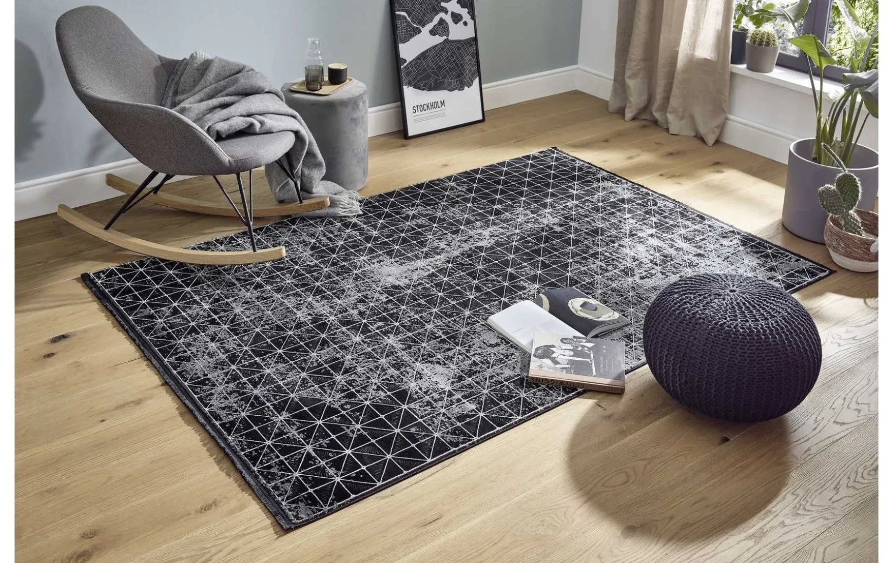 Dieser gemusterte Veloursteppich in einem elegantem Schwarz, hergestellt aus 50% Viskose und 50% Acryl, ist nicht nur ein visuelles Highlight, sondern auch äußerst funktional. Perfekt geeignet für Fußbodenheizungen, bietet er Wärme und Gemütlichkeit. Das Material ist antistatisch und pflegeleicht, sodass Sie mühelos einen stilvollen Look beibehalten können. Der Teppich verleiht Ihrem Raum nicht nur eine ansprechende Ästhetik, sondern auch Komfort und praktische Eigenschaften.
