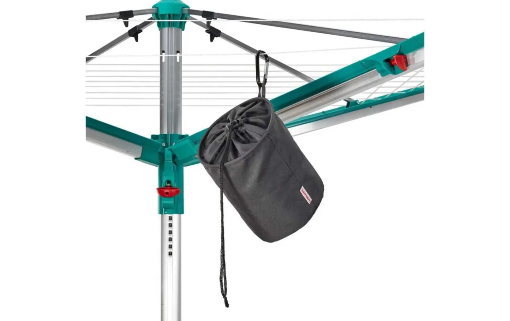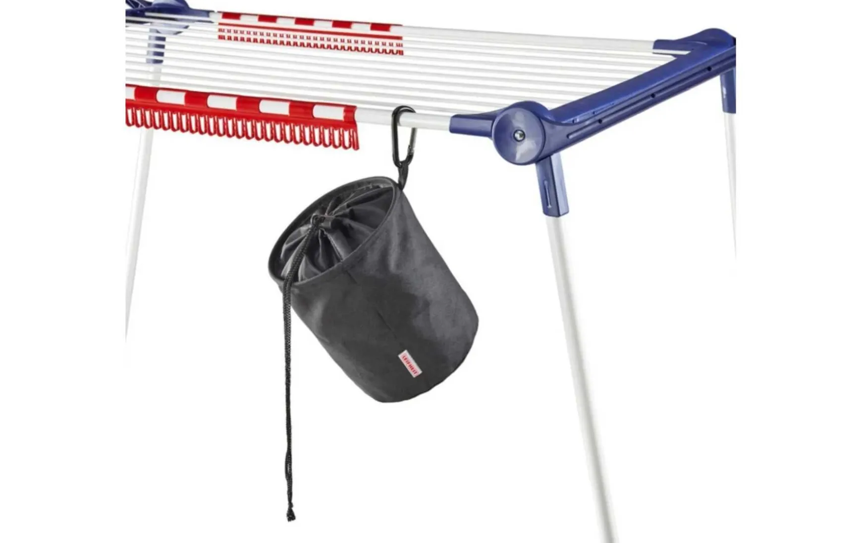 Wer einen Wäscheklammerbeutel von Leifheit kauft, der hat alle Klammern stets griffbereit. Denn in diesem können dank des großen Füllvolumens bis zu 100 der kleinen Helfer verstaut werden. Diese sind dort vor Umwelteinflüssen wie Regen geschützt. Denn der engmaschig gewebte Stoff ist besonders hochwertig und schützt vor eindringender Feuchtigkeit sowie Korrosion. Falls doch mal Regenwasser in den Beutel gelangt, bleibt es dank dem wasserdurchlässigen Boden nicht im Beutel stehen. Mithilfe des stabilen Karabinerhakens kann der Wäscheklammerbeutel einfach an der Wäschespinne oder dem Wäscheständer befestigt werden. Für leichtes Verschließen des Beutels sorgt eine Zugkordel. So sind die Wäscheklammern vor Staub und Schmutz sicher.