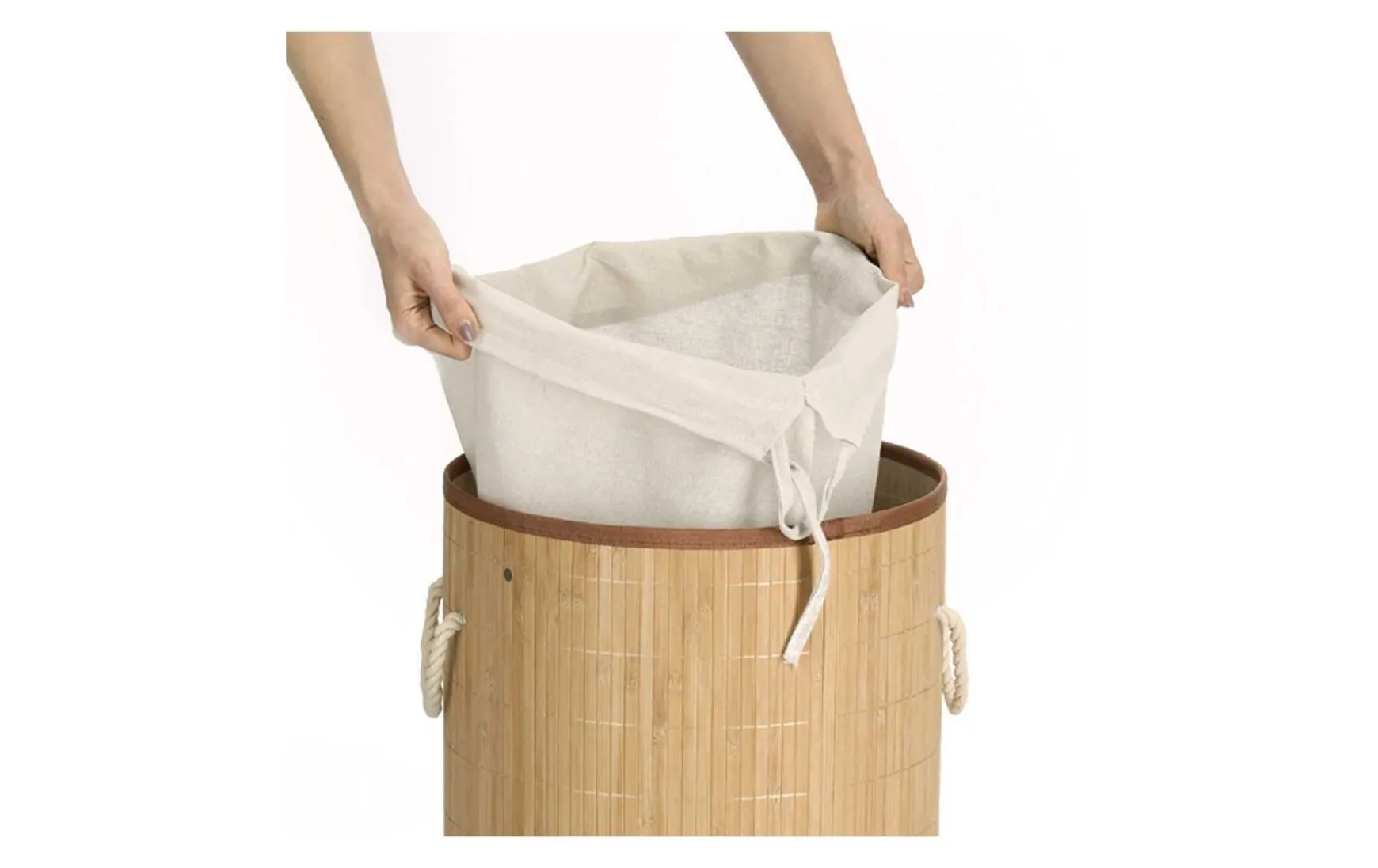 Dieser elegante Wäschesammler sorgt für Ordnung im Haushalt und besticht durch sein edles Bambus-Design und kombiniert Stil mit Funktionalität.