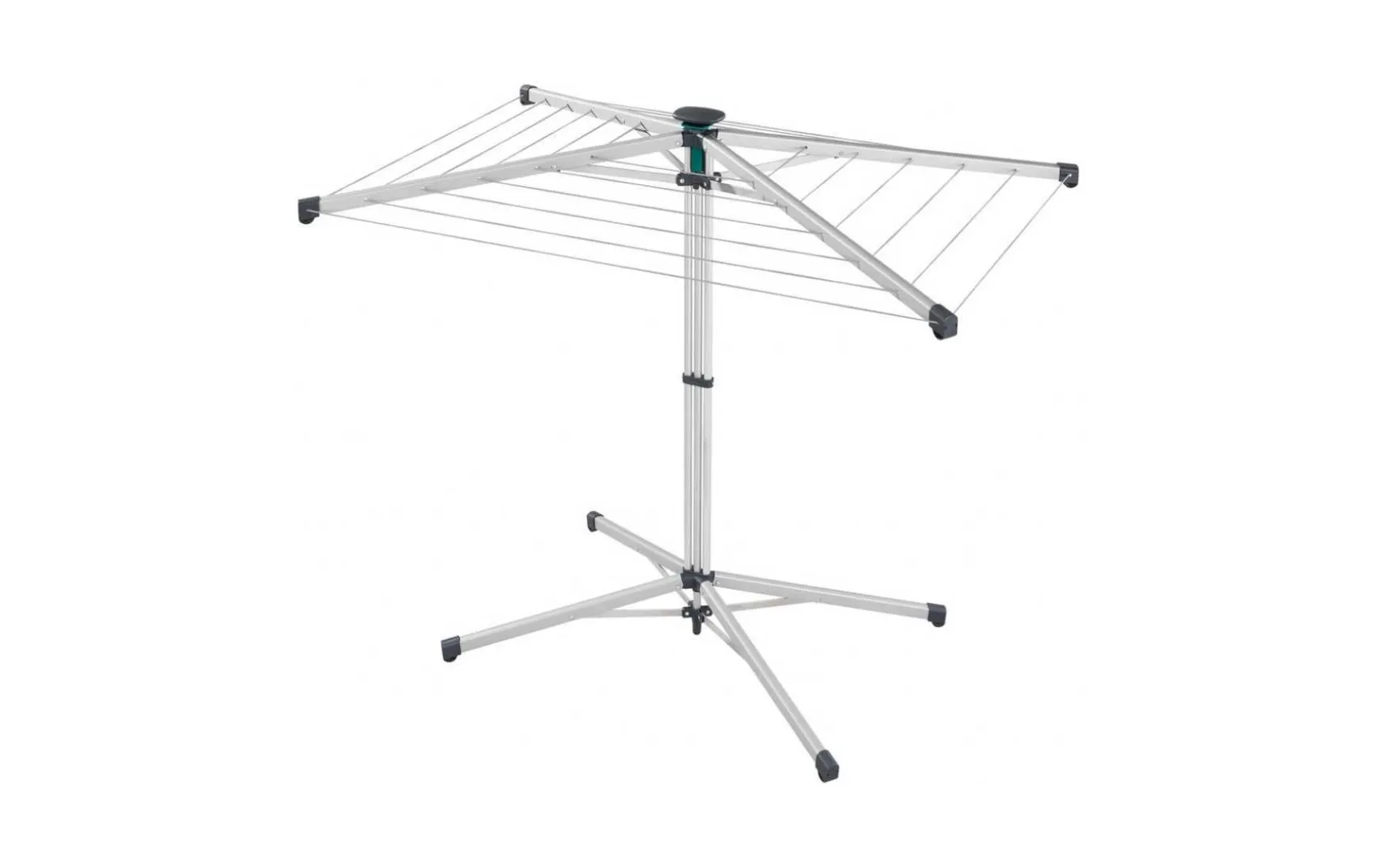 Praktische Standwäschespinne mit 14m Leinenlänge. Darauf findet mehr als eine Waschmaschinenladung Platz. Die äußersten Leinen sind bis zu 110cm lang und 95cm hoch, daher ideal für lange Wäschestücke. Zu den größten Vorteilen der Wäschespinne gehört die einfache Bedienung mit einer Hand auf Knopfdruck. Dank der breiten Basis und den robusten Armen steht die Standwäschespinne auch vollbeladen sicher. Sie ist gegen Witterungseinflüsse beständig und kann sowie innen als auch außen verwendet werden. Sie ist platzsparend, und somit nicht nur für kleinere Wohnungen und enge Balkone, sondern auch als der perfekte Begleiter für Ihren nächsten Campingurlaub geeignet. Dabei ist auch das geringe Gewicht von ca. 3,6 kg wichtig. Die Abmessungen der Wäschespinne im zusammengelegten Zustand betragen lediglich 147x9x12cm, außerdem wird sie inklusive Schutzhülle geliefert, die die Leinen sauber hält und den Transport erleichtert.