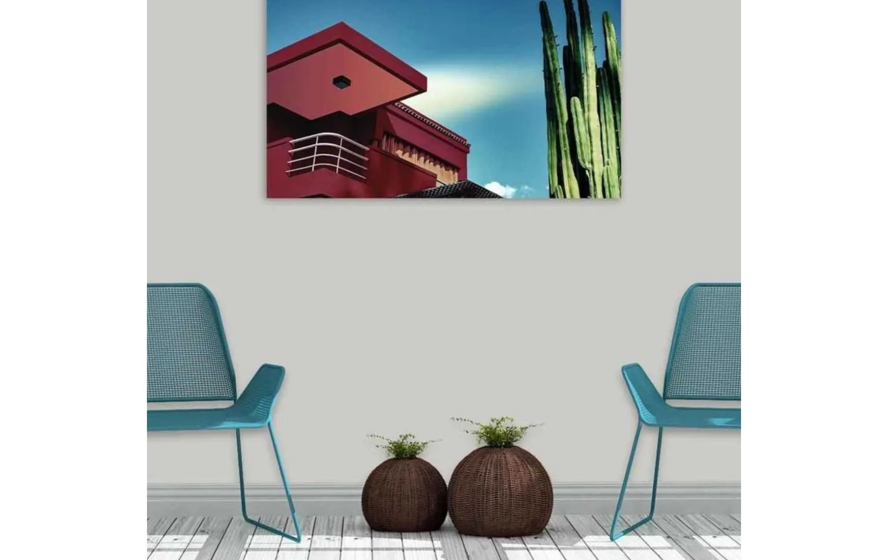 Dieses superscharfe und klare Fotogemälde von Wandkraft, gedruckt auf einer weißen Dibondplatte mit einer Stärke von 3 mm, ist definitiv etwas für Sie, wenn Sie ein seidenmattes und superscharfes Fotogemälde in moderner Atmosphäre wünschen. Dieses Gemälde, das einen Balkon darstellt, wird eine schöne Wanddekoration in jedem modernen Interieur sein.