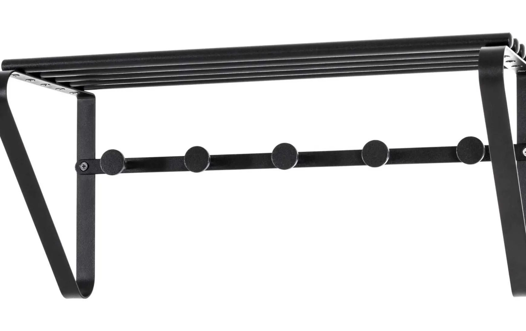 Die praktische Wandgarderobe überzeugt durch funktionales Design und robuste Verarbeitung. Aus chromverzinktem, schwarz pulverbeschichtetem Stahl gefertigt, bietet sie mit fünf stabilen Garderobenhaken und integrierter Hutablage ausreichend Platz für Jacken, Mäntel und Accessoires. Mit ihren kompakten Maßen von ca. 45 × 18 × 20 cm eignet sich die Garderobe ideal für Flur oder Eingangsbereich. Pflegeleicht und einfach mit einem feuchten Tuch zu reinigen. Vormontiert geliefert, erhältlich in der Filiale zur Selbstabholung oder Lieferung.