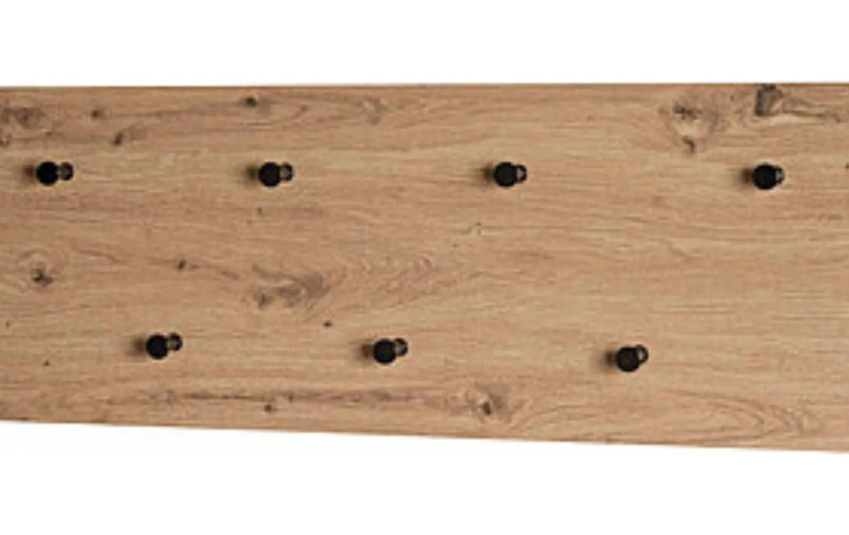 Diese Wandgarderobe ist so flexibel wie Sie! Man kann sie längs oder quer aufhängen, sie als klassische Garderobe im Eingangsbereich verwenden oder einfach in jedem Zimmer als zusätzliche Ablagemöglichkeit. Man möchte gar nicht meinen, was man alles an einem Haken aufhängen kann. Die Wandgarderobe ist aus MDF-Dekor eiche, die Garderobenhaken sind aus Metall in schwarz lackiert.