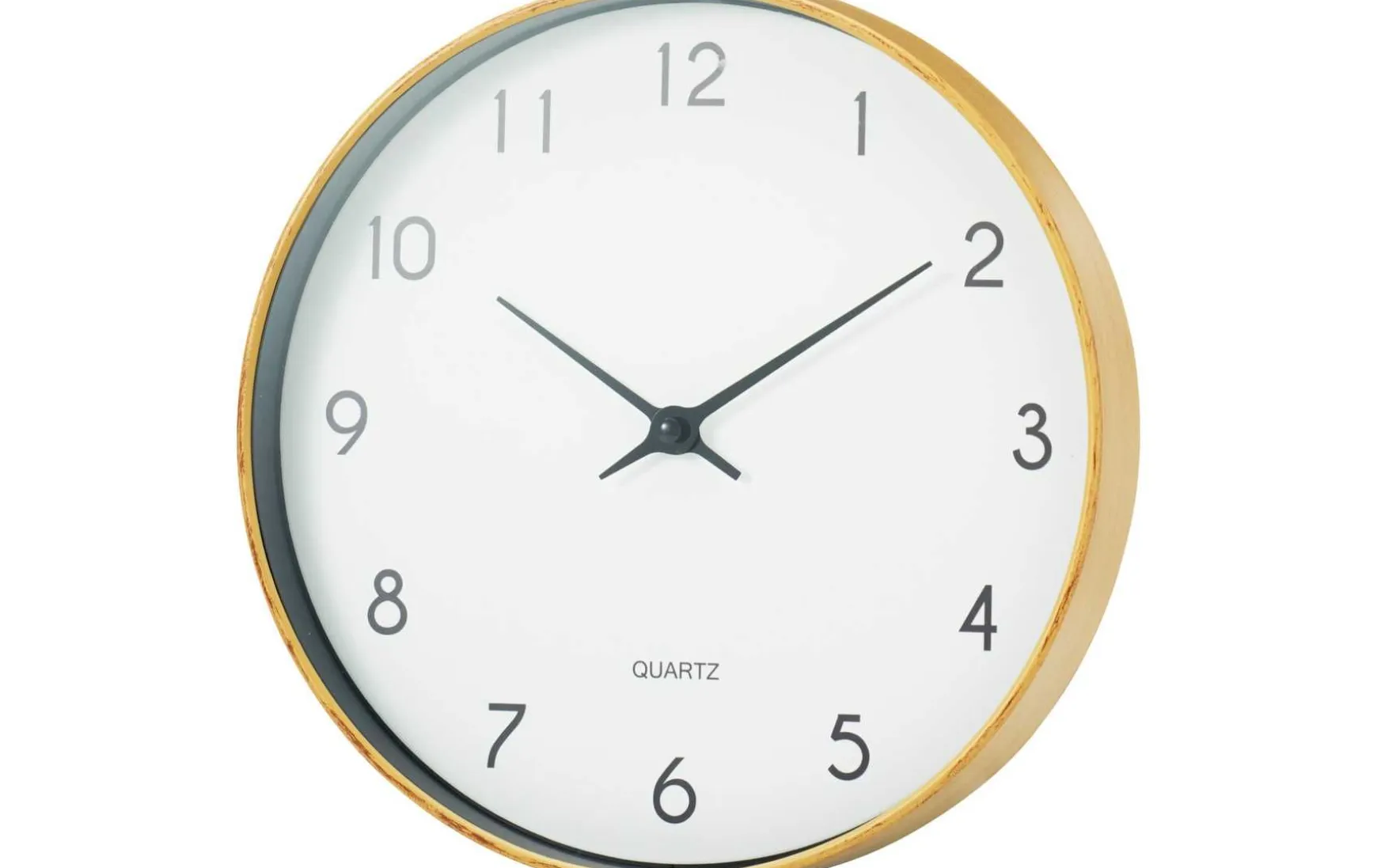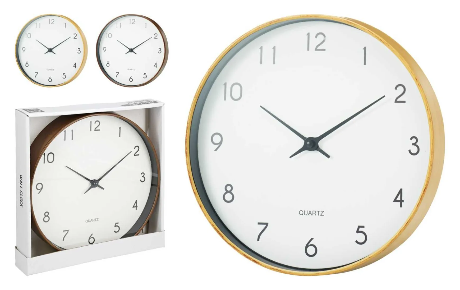 Ein eleganter Rahmen in einer hellen, natürlichen Farbe (z. B. Eiche oder helles Holz) verleiht der Uhr einen zeitlosen Charakter.