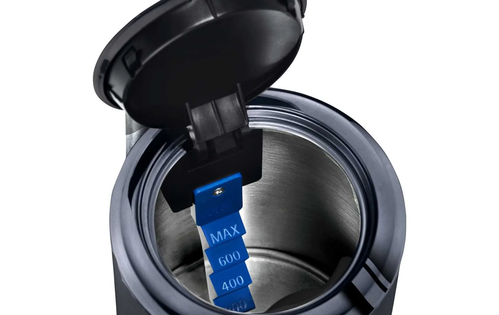 Mit 1.800 Watt, einem Fassungsvermögen von 0,8 Litern sowie einem verdeckten Heizelement aus Edelstahl ist dieser kompakte Wasserkocher perfekt zum Aufkochen selbst kleinster Wassermengen geeignet.