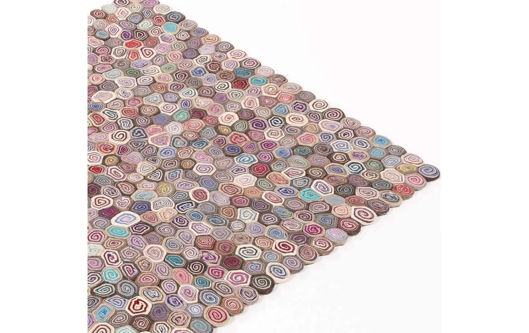 Unser Webteppich aus kleinen Baumscheiben im Patchwork-Look ist eine faszinierende Kreation, die aus einer Mischug aus Wolle und Polyester gefertigte ist. Jede Baumscheibe wurde sorgfältig in ein kunstvolles Patchwork-Muster eingewebt, um einen Teppich von einzigartiger Schönheit und rustikalem Charme zu schaffen. Die Kombination aus natürlicher Wolle und strapazierfähigen Polyester verleiht dem Teppich nicht nur eine warme und gemütliche Textur, sondern sorgt auch für Langlebigkeit und Pflegeleichtigkeit.