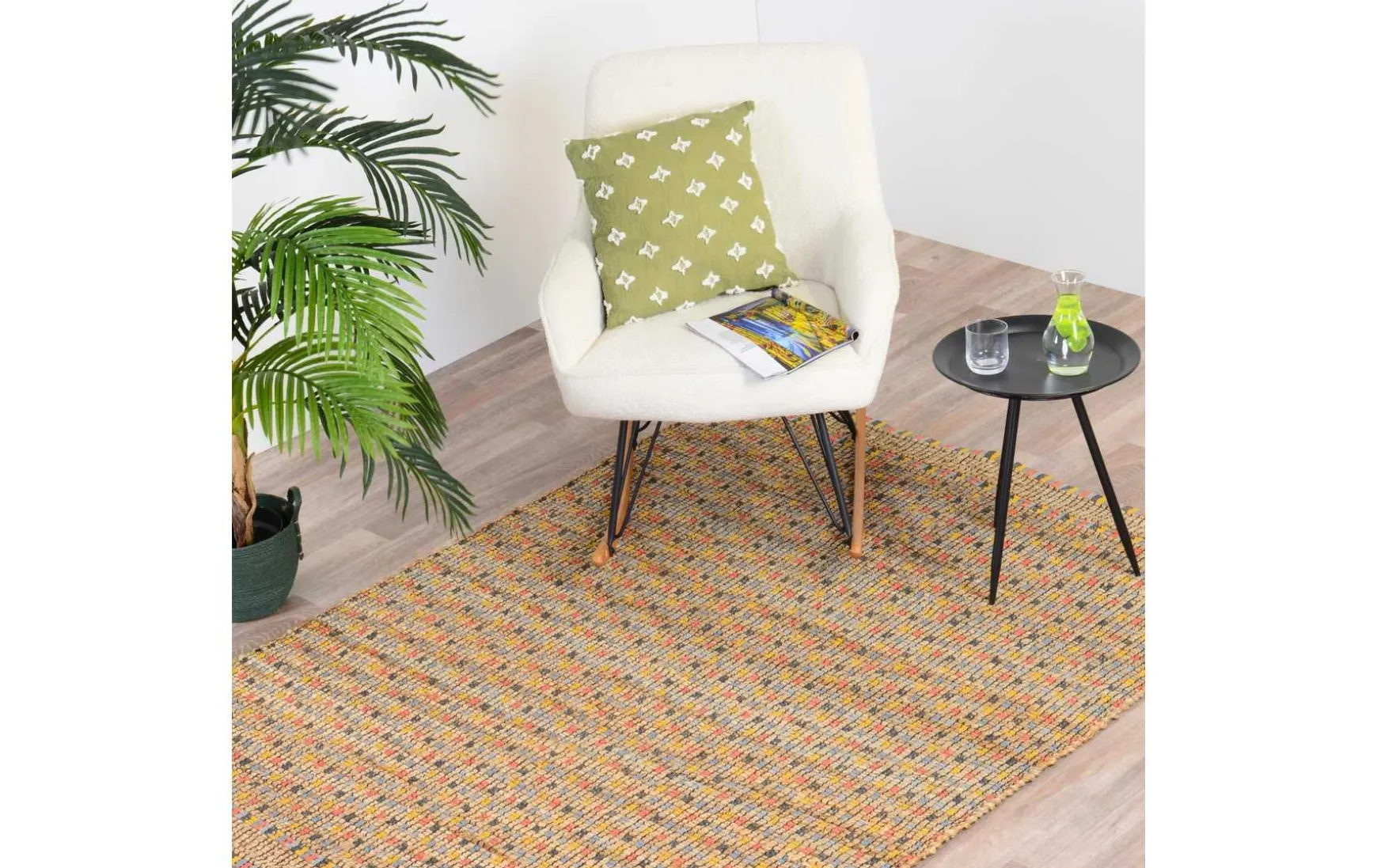 - Pflegehinweise: Klopfe und schüttel losen Schmutz, wie Chipskrümel oder Sand gut ab. Sauge deinen Wollteppich mit einem Staubsauger ab.