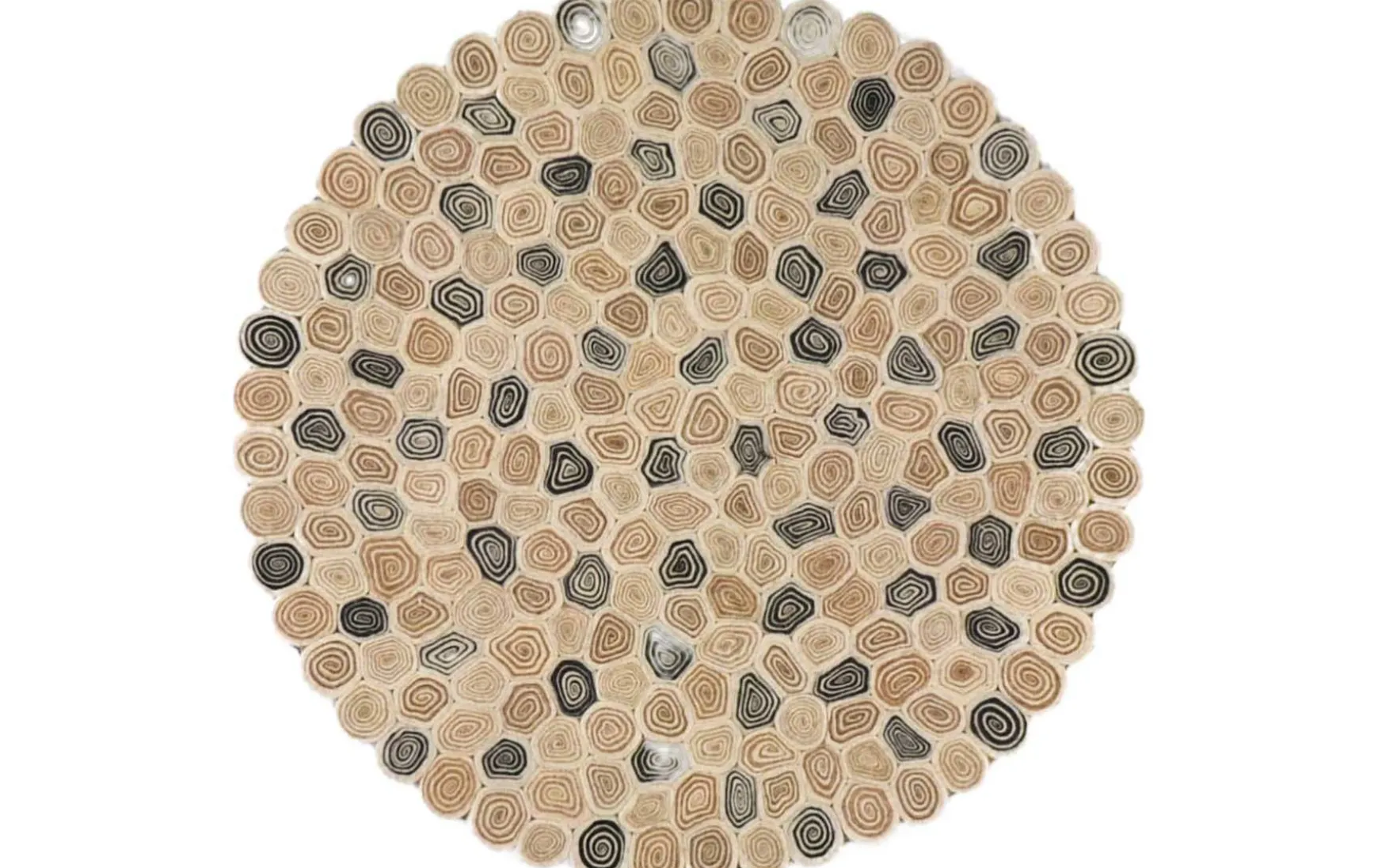 Unser Webteppich aus kleinen Baumscheiben im Patchwork-Look ist eine faszinierende Kreation, die aus einer Mischug aus Wolle und Polyester gefertigte ist. Jede Baumscheibe wurde sorgfältig in ein kunstvolles Patchwork-Muster eingewebt, um einen Teppich von einzigartiger Schönheit und rustikalem Charme zu schaffen. Die Kombination aus natürlicher Wolle und strapazierfähigen Polyester verleiht dem Teppich nicht nur eine warme und gemütliche Textur, sondern sorgt auch für Langlebigkeit und Pflegeleichtigkeit.