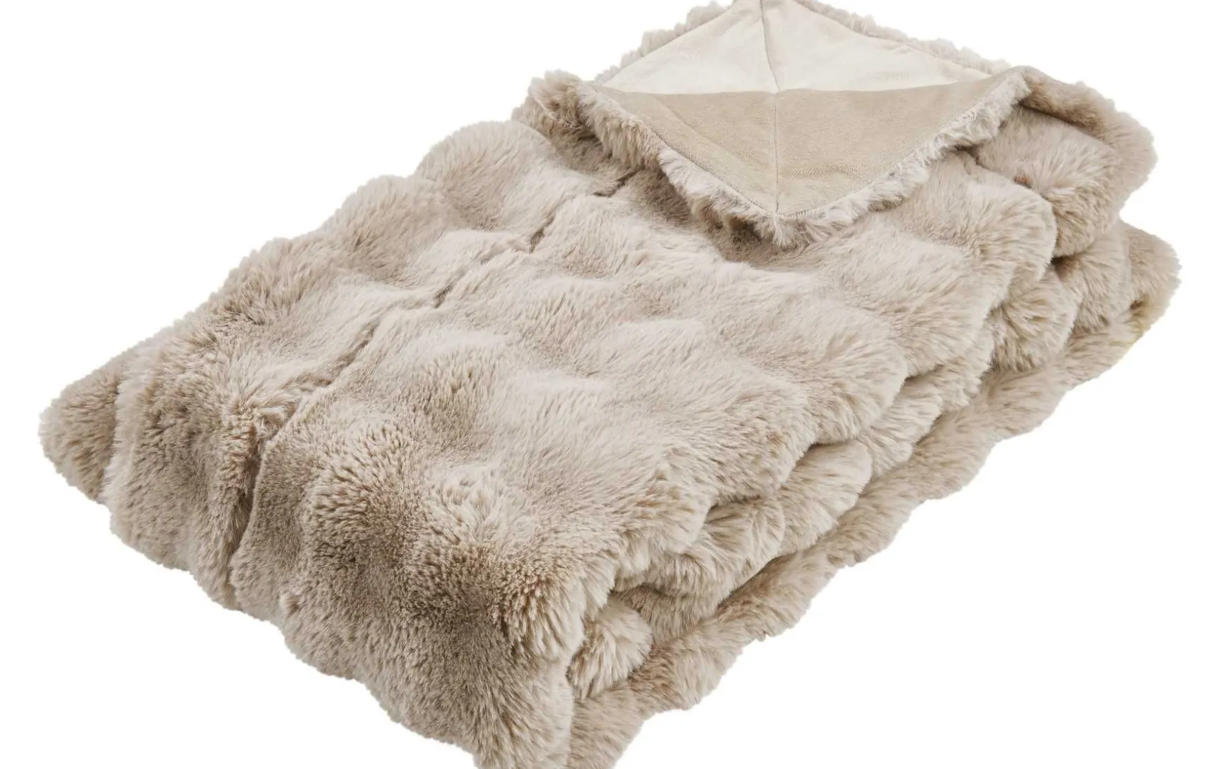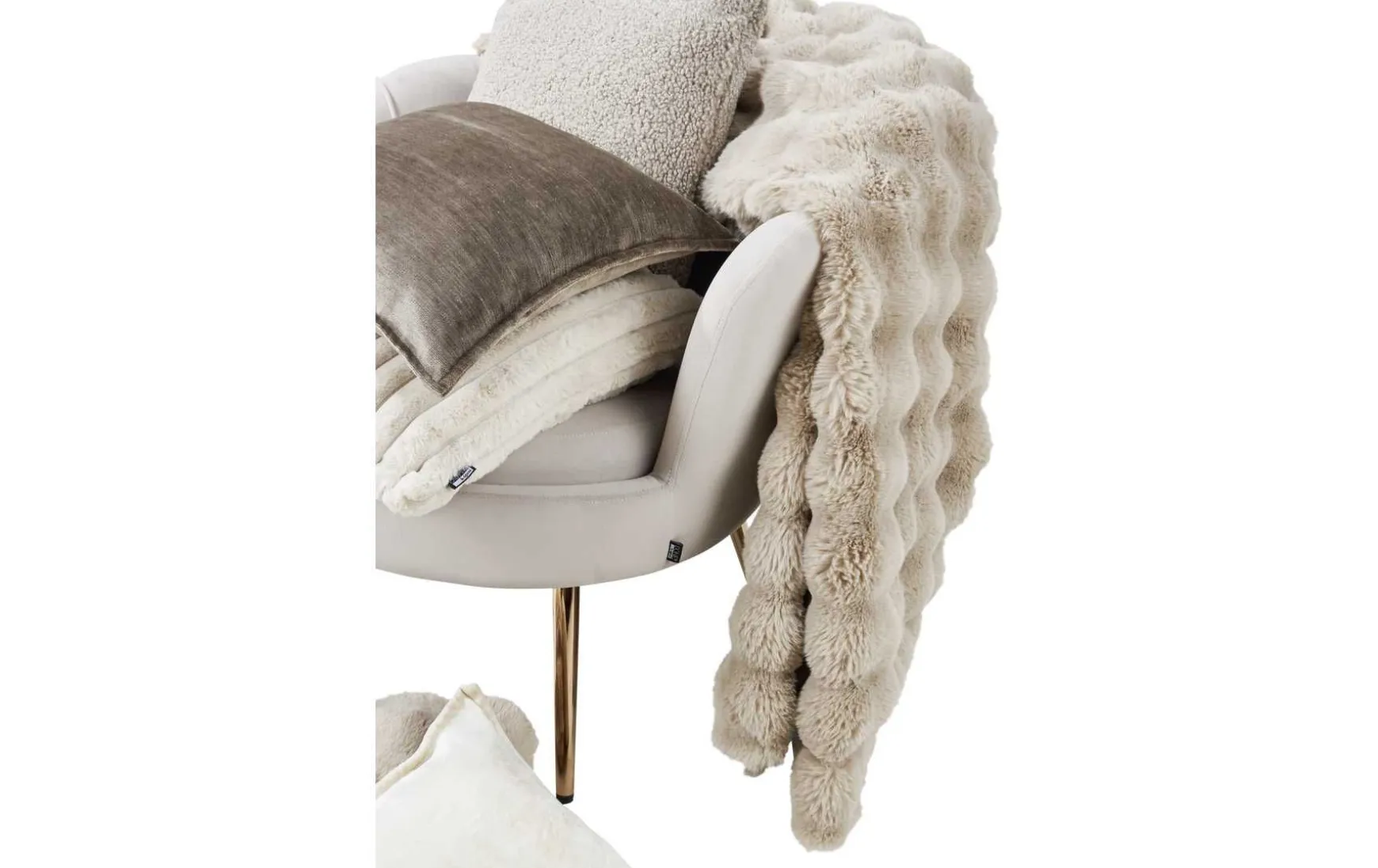 Der rückseitige Mink-Stoff sorgt für Wärme und Eleganz. Diese ausgefallene Decke vereint Stil und Funktionalität auf höchstem Niveau.