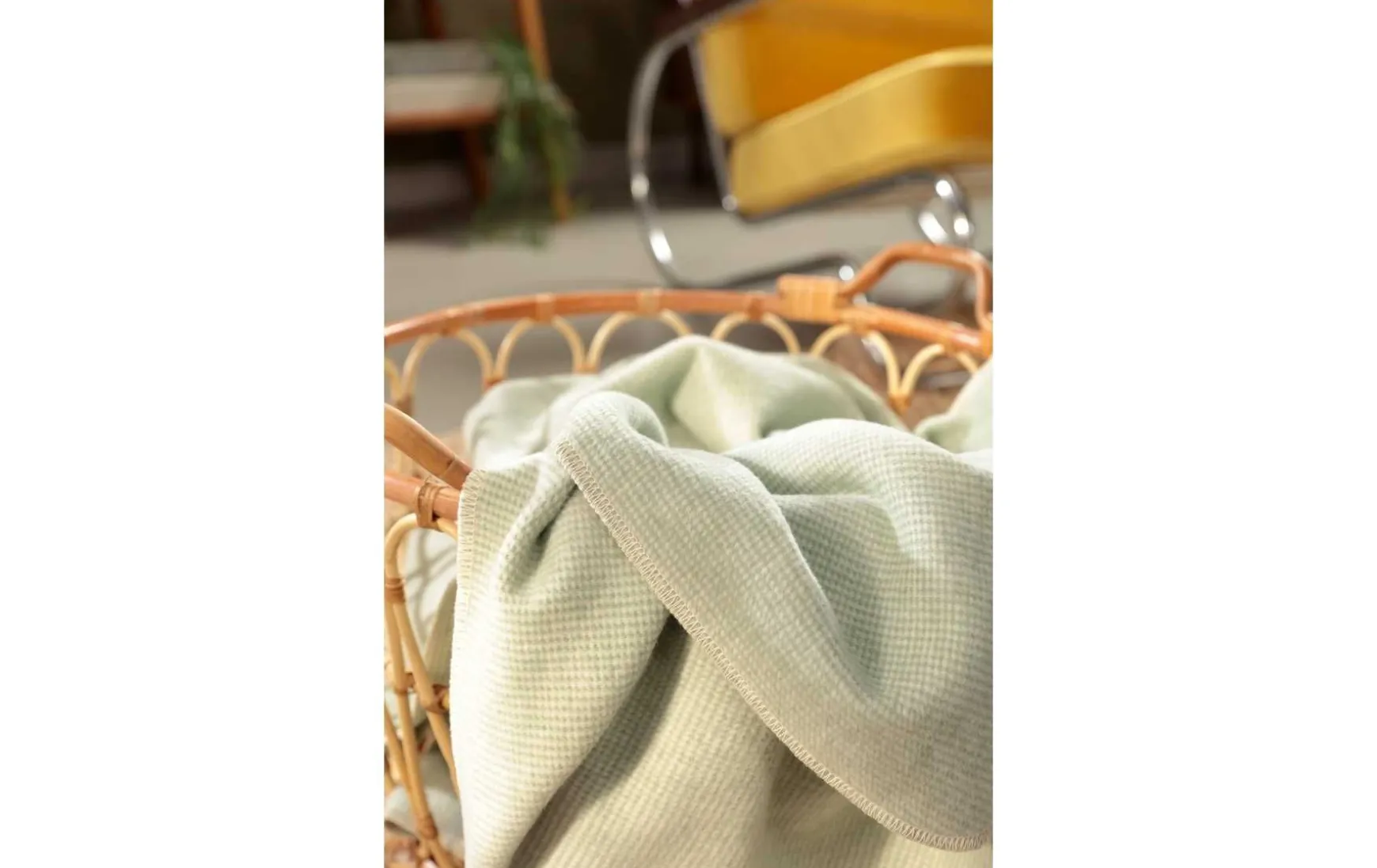 Die Kuscheldecke mit Overlock-Einfassung besteht mindestens zur Hälfte aus recycelter Baumwolle und ist damit ein perfektes Wohlfühlprodukt für alle, die sich gerne natürlich und nachhaltig einkuscheln.