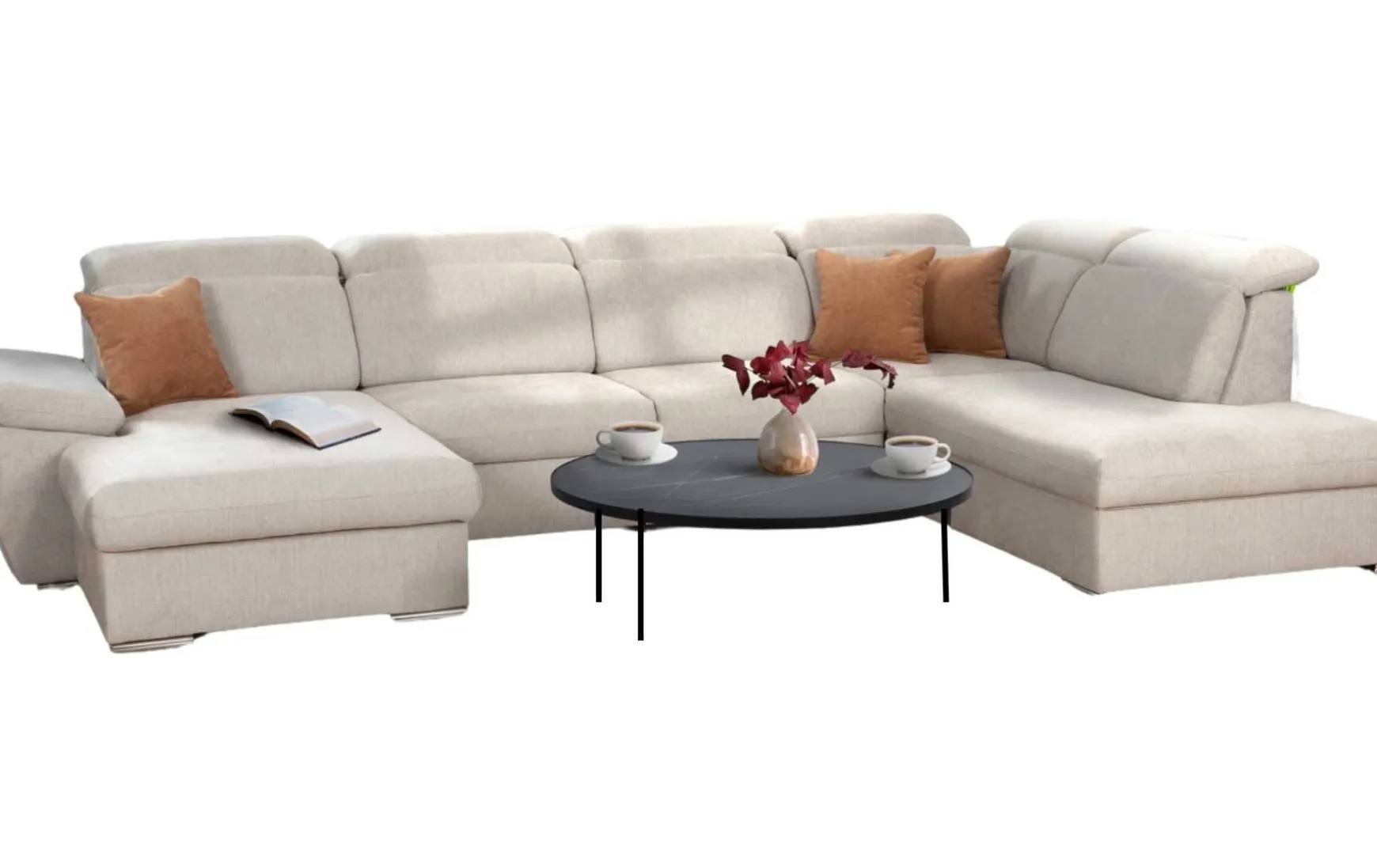 Diese moderne Wohnlandschaft in großzügiger U-Form überzeugt durch hohen Komfort, funktionale Ausstattung und ein zeitgemäßes Design. Die integrierte Kopfteilverstellung sorgt für individuellen Sitz- und Liegekomfort, während die echt bezogene Liegefläche ein hochwertiges Gesamtbild bietet. Mit einer Breite von ca. 360 cm und einer großzügigen Liegefläche von ca. 122 x 256 cm eignet sich die Wohnlandschaft ideal zum Entspannen, Relaxen und Übernachten. Dank „Rücken echt“ ist das Sofa frei im Raum platzierbar. Die komfortable Polsterung aus Kaltschaum auf Nosagfederung garantiert langanhaltenden Sitzkomfort. Individuell konfigurierbar und in weiteren Farbvarianten erhältlich, lässt sich die Wohnlandschaft optimal an persönliche Wohnwünsche anpassen. Optional sind Bettfunktion und Stauraum gegen Mehrpreis erhältlich.
