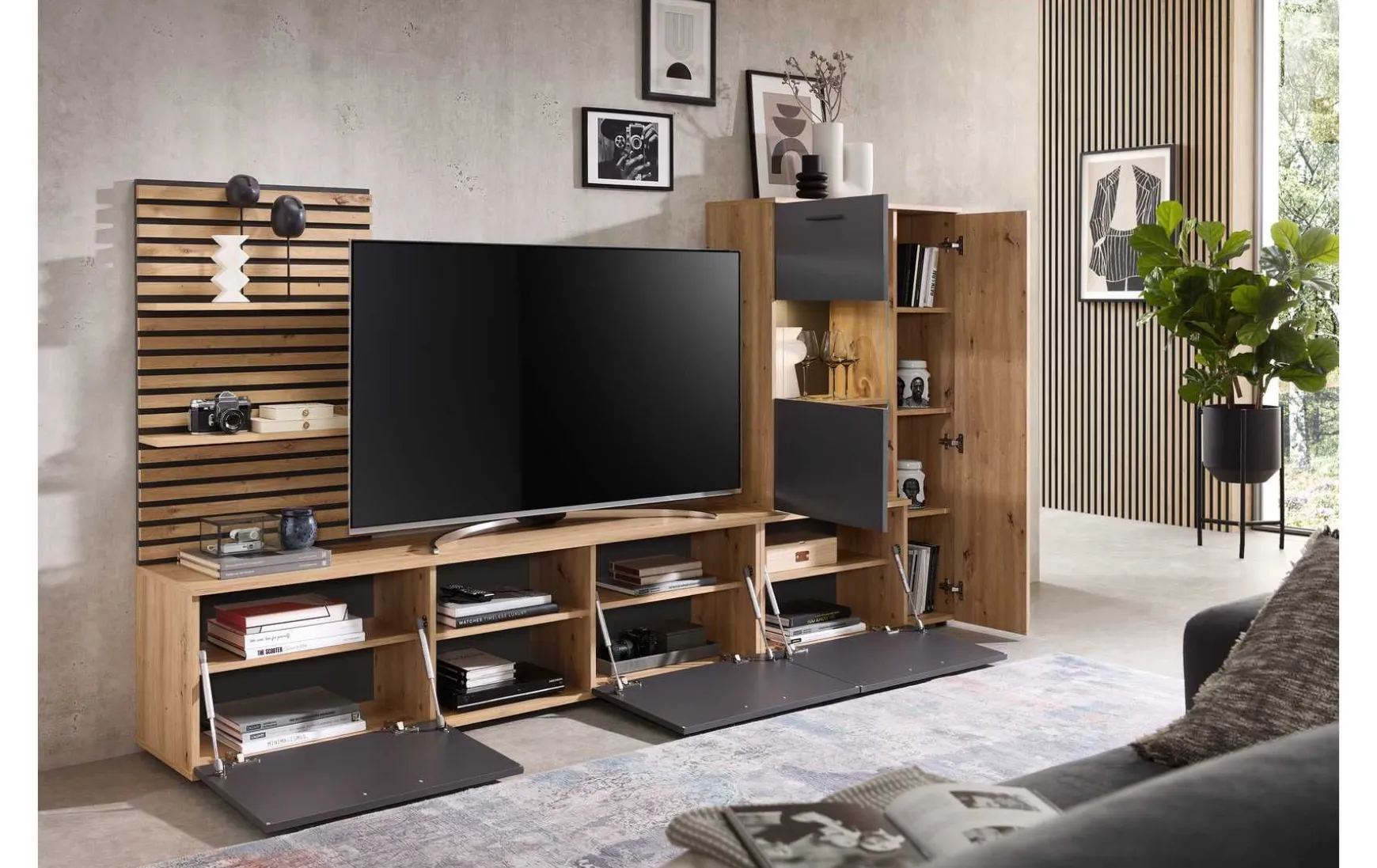 Diese moderne Wohnwand bestehet aus: