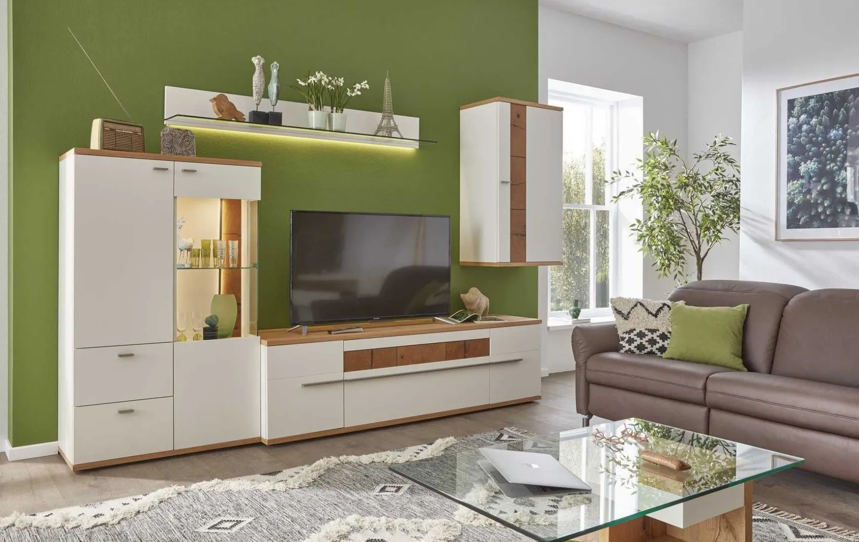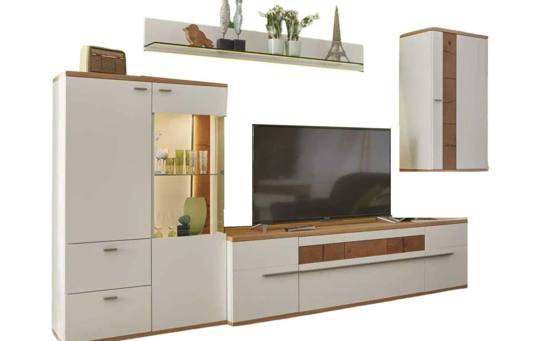 - Rückwand: Weiß Seidenmatt, Weiß Seidenmatt Wildeiche
