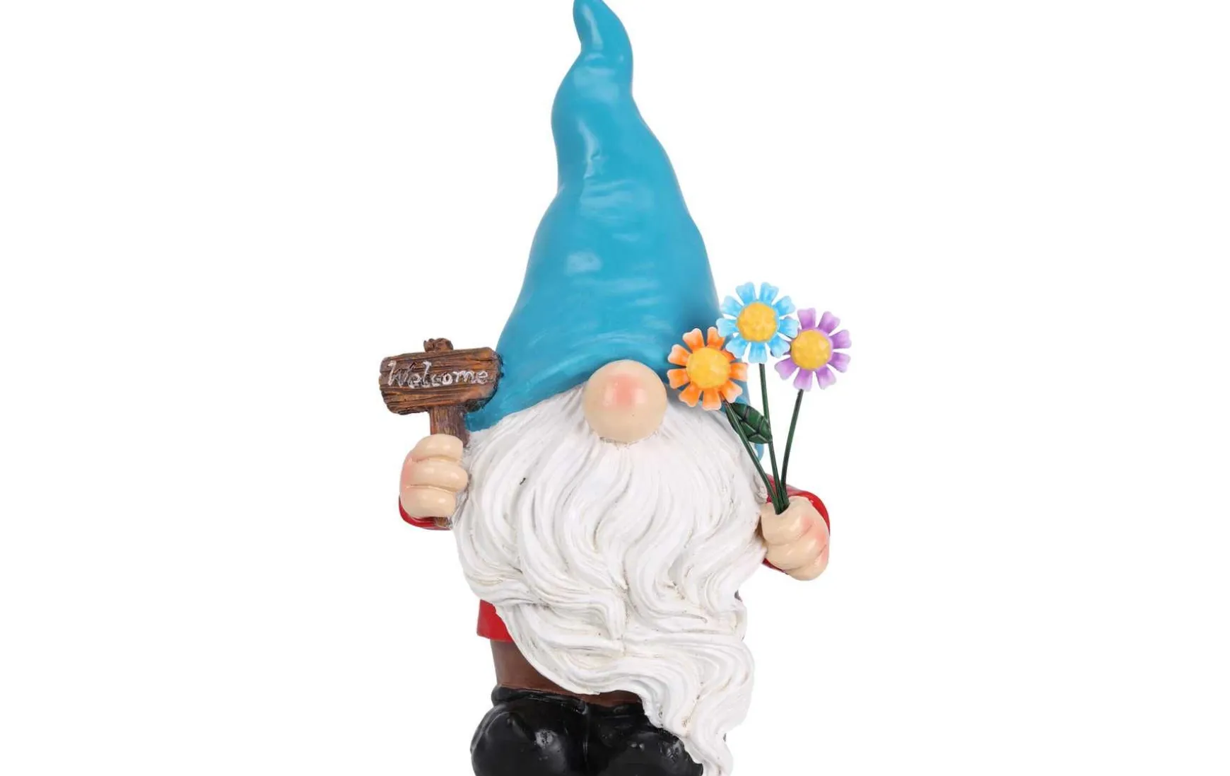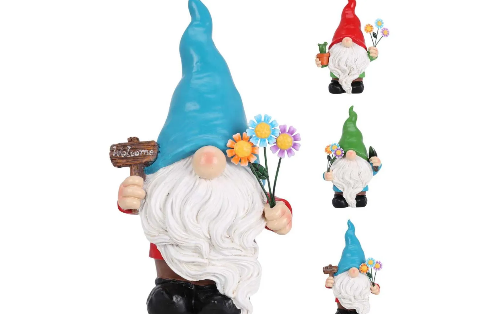 Im Preis ist ein Zwerg mit Blumen in einer Farbe enthalten.