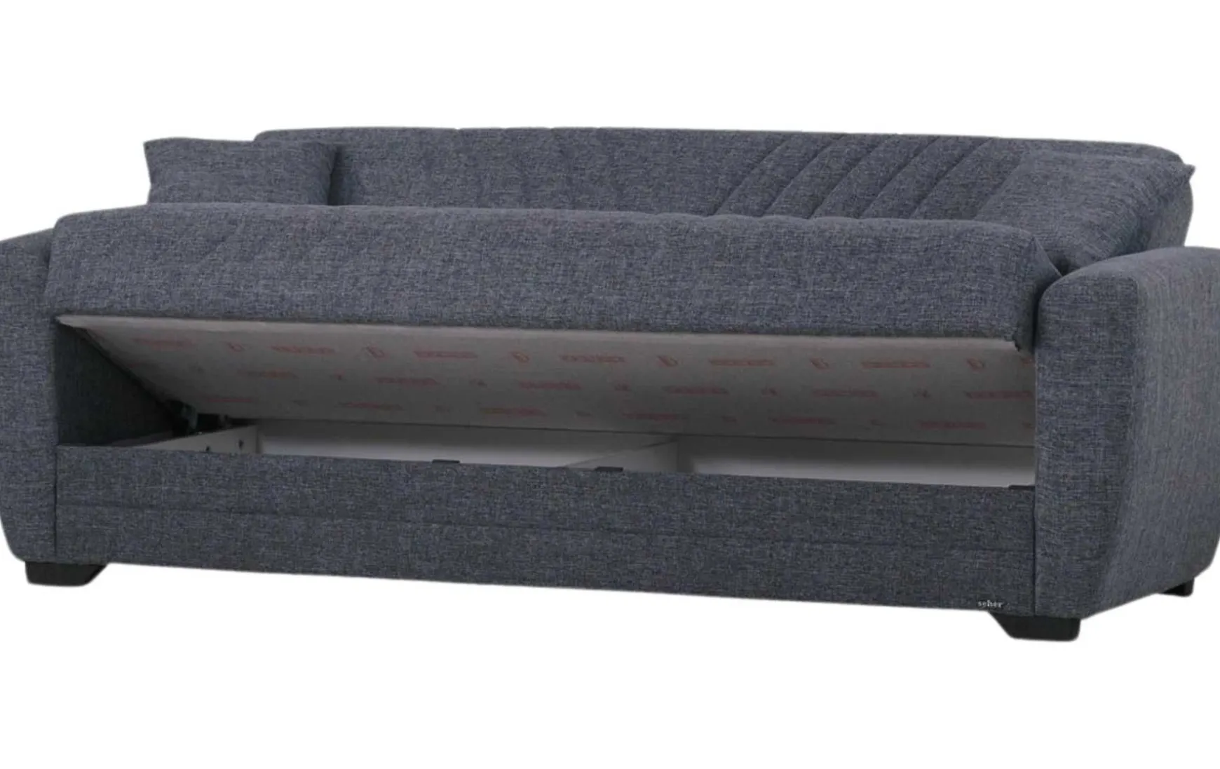 Modernes 3-Sitzer Sofa in Grau mit Kipp- und Liegefunktion sowie praktischem Stauraum. Inklusive 2 Zierkissen für zusätzlichen Komfort. Bequeme Federkernpolsterung in Sitz und Rücken, stabiler Stoffbezug und schwarze Kunststofffüße. Großzügige Liegefläche von ca. 108 x 190 cm, vormontiert geliefert – ideal als komfortables Sofa und funktionales Schlafsofa.
