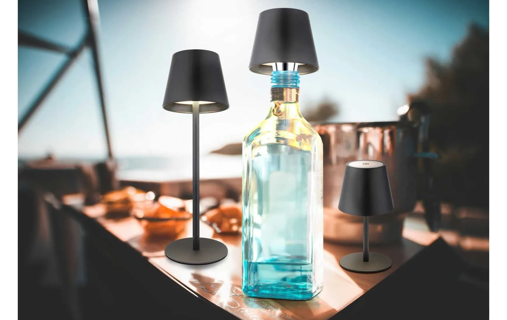 Diese Tischleuchte bietet drei verschiedene Verwendungsmöglichkeiten: Sie kann mit einem geraden Rohr als Tischleuchte mit intensivem Licht genutzt werden, mit zwei Rohren für eine sanftere Beleuchtung oder als Flaschenaufsatz verwendet werden.