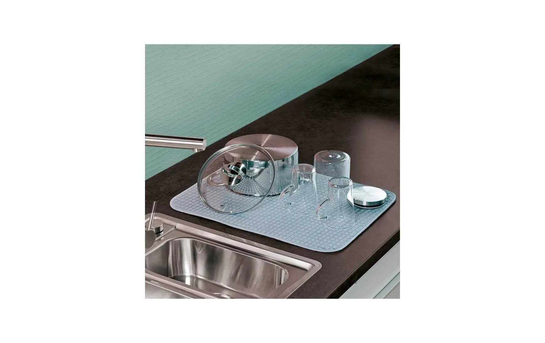 Doch nicht nur Ihre Arbeitsfläche schonen Sie mit der Abtropfmatte – auch Ihr Geschirr liegt weich und sanft auf.
