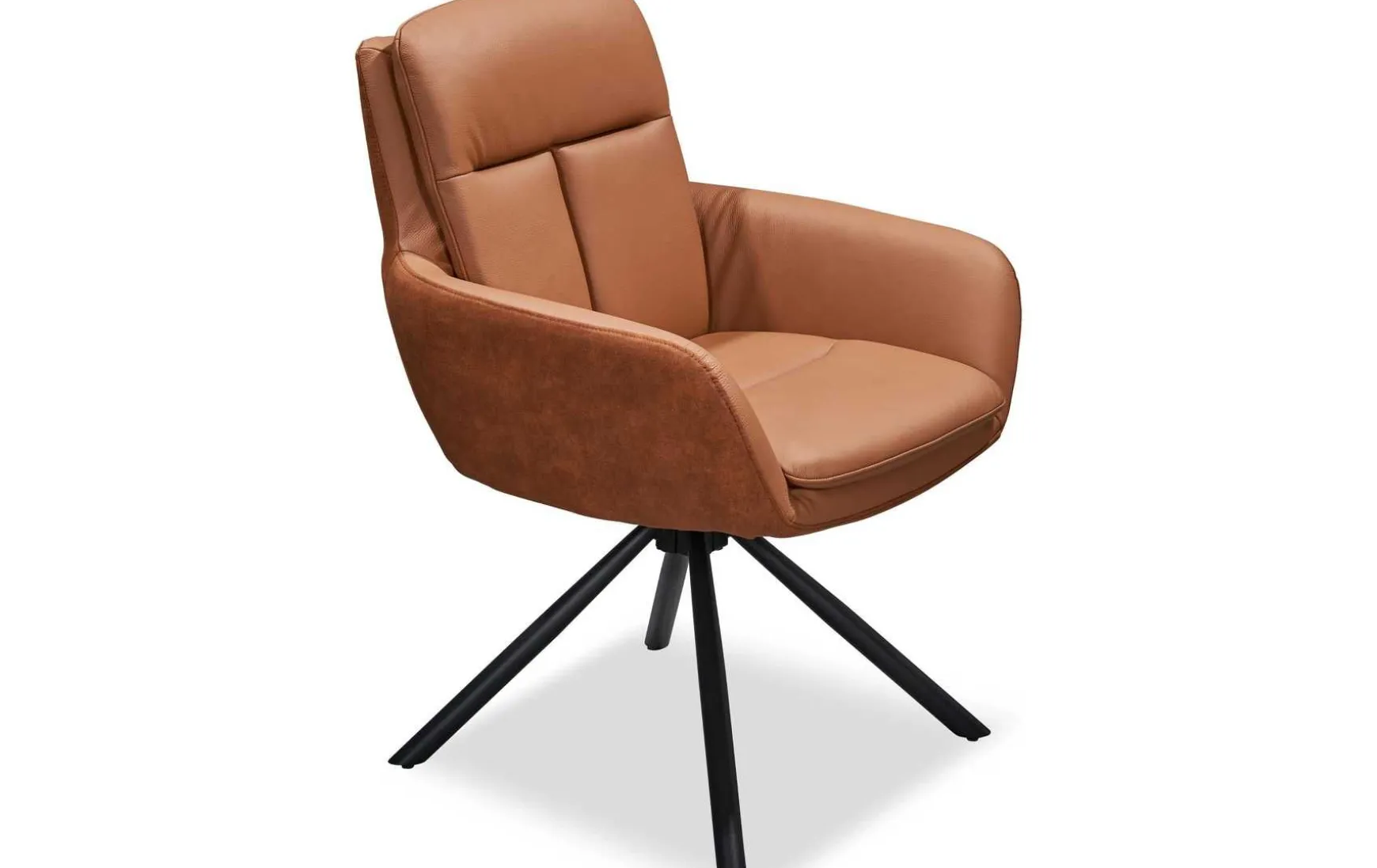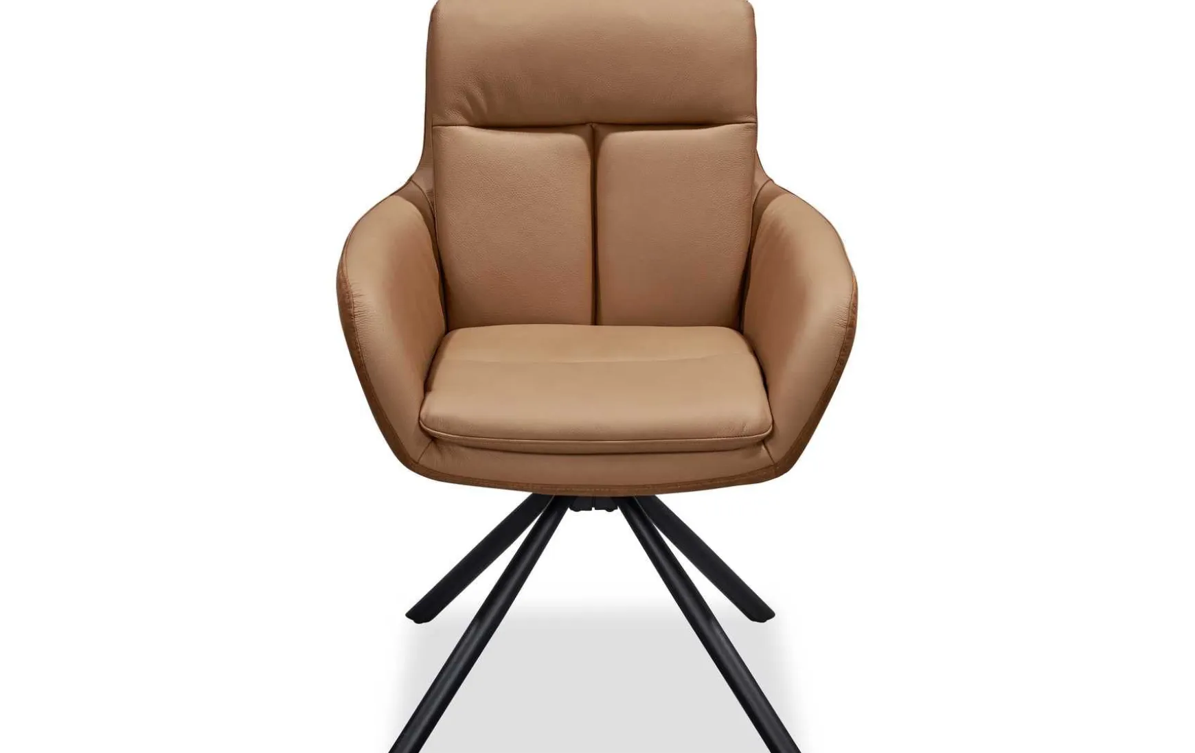 Mit seinen harmonischen Proportionen von ca. 63 × 90 × 65 cm und einer Sitzhöhe von ca. 51 cm bietet der Stuhl eine entspannte Sitzposition. Die komfortablen Armlehnen laden zum Zurücklehnen ein, während das schwarz pulverbeschichtete Metallgestell Stabilität und moderne Leichtigkeit ausstrahlt. Besonders praktisch: Der Stuhl ist 360 Grad drehbar und verfügt über eine Auto-Return-Funktion, die ihn nach dem Aufstehen automatisch in seine Ausgangsposition zurückführt – elegant, leise und komfortabel.
