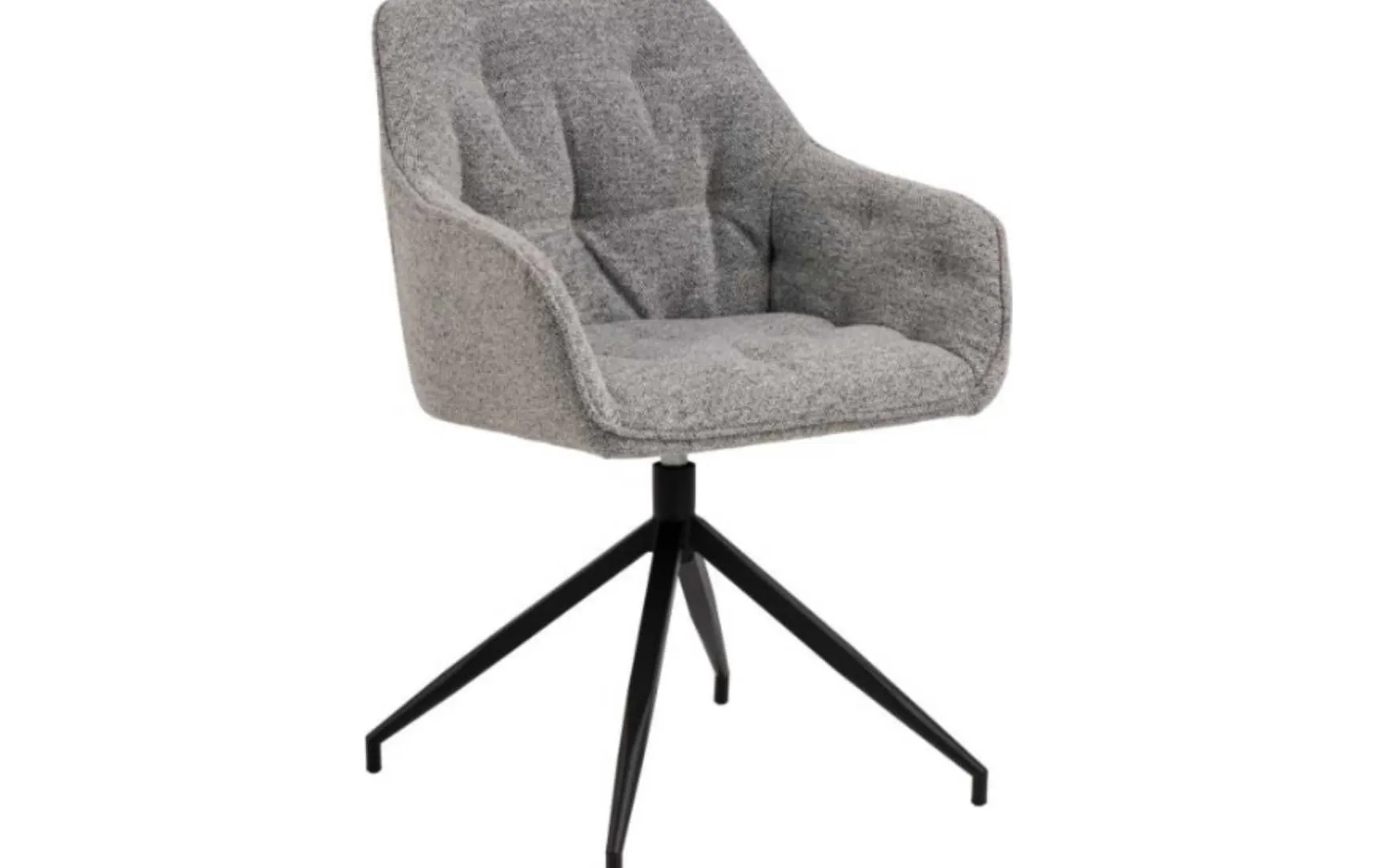 Dieser moderne Armlehnstuhl verbindet stilvolles Design mit funktionalem Komfort und ist eine ideale Wahl für Esszimmer, Wohnzimmer oder Büro. Der hochwertige Stoffbezug in zeitlosem Grau sorgt für eine elegante und vielseitig kombinierbare Optik. Die edle Rautenheftung verleiht dem Stuhl eine besondere Note und unterstreicht den hochwertigen Charakter. Ein stabiler schwarzer Metallfuß gewährleistet sicheren Stand und setzt einen modernen Akzent. Dank der integrierten Drehfunktion bietet der Armlehnstuhl zusätzliche Bewegungsfreiheit und hohen Sitzkomfort – perfekt für den täglichen Gebrauch und lange Sitzphasen.