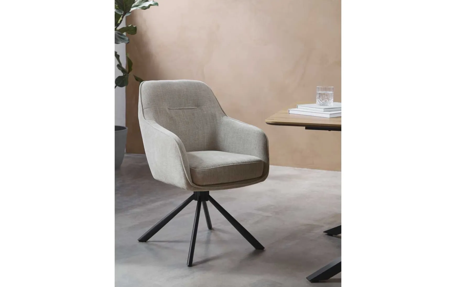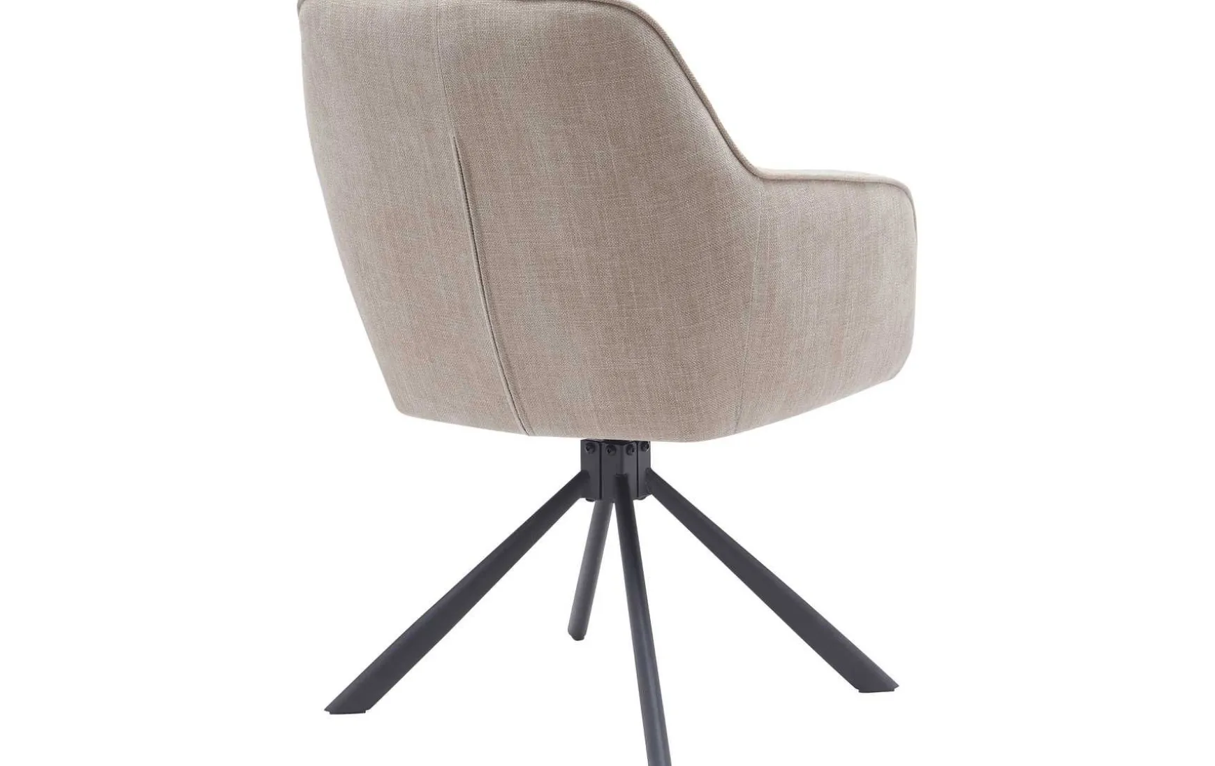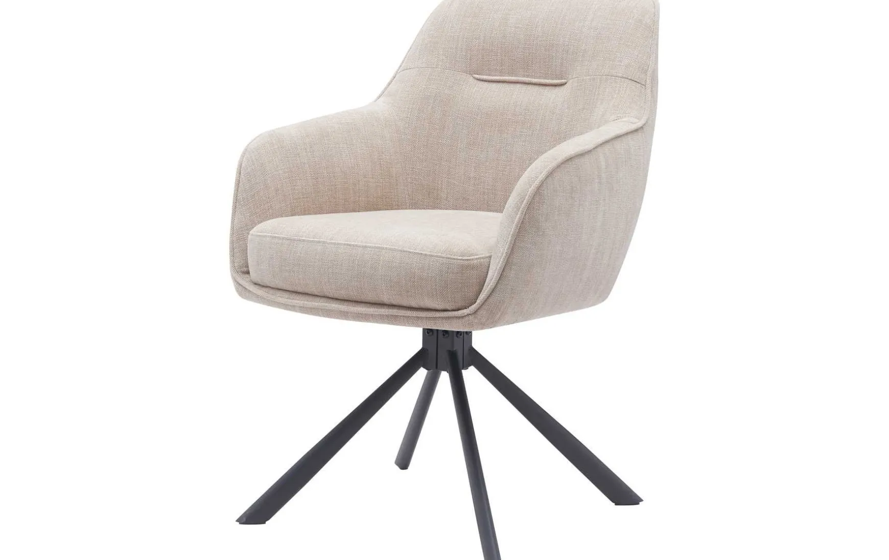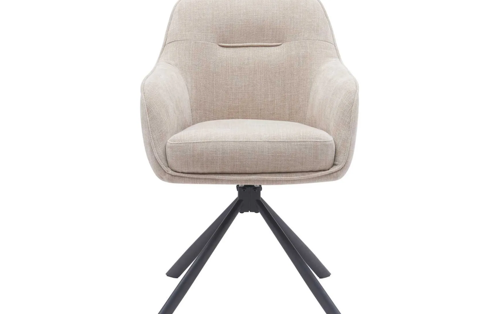 Dieser elegante Armlehnstuhl verbindet zeitloses Design mit spürbarem Komfort und wird schnell zum stilvollen Mittelpunkt in Ess- oder Wohnbereich. Der fein strukturierte Stoff in hellem Naturton wirkt warm, modern und einladend zugleich. Seine sanft geschwungene Form umschließt den Körper angenehm und sorgt für ein entspanntes Sitzgefühl – perfekt für lange Abende am Tisch oder ruhige Momente zwischendurch.