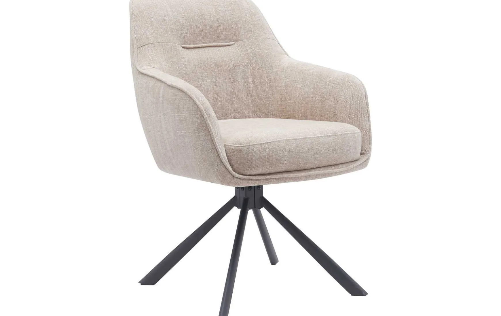 Mit seinen ausgewogenen Maßen von ca. 59 × 87 × 65 cm bietet der Stuhl großzügigen Platz, ohne wuchtig zu wirken. Die komfortablen Armlehnen und die angenehm gepolsterte Sitzfläche laden zum Zurücklehnen ein. Das markante Metallgestell in Schwarz, sternförmig ausgeführt, verleiht dem Stuhl eine moderne Leichtigkeit und sorgt gleichzeitig für sicheren Stand. Besonders praktisch: Die Sitzschale ist drehbar, was zusätzlichen Komfort und Bewegungsfreiheit im Alltag bietet.