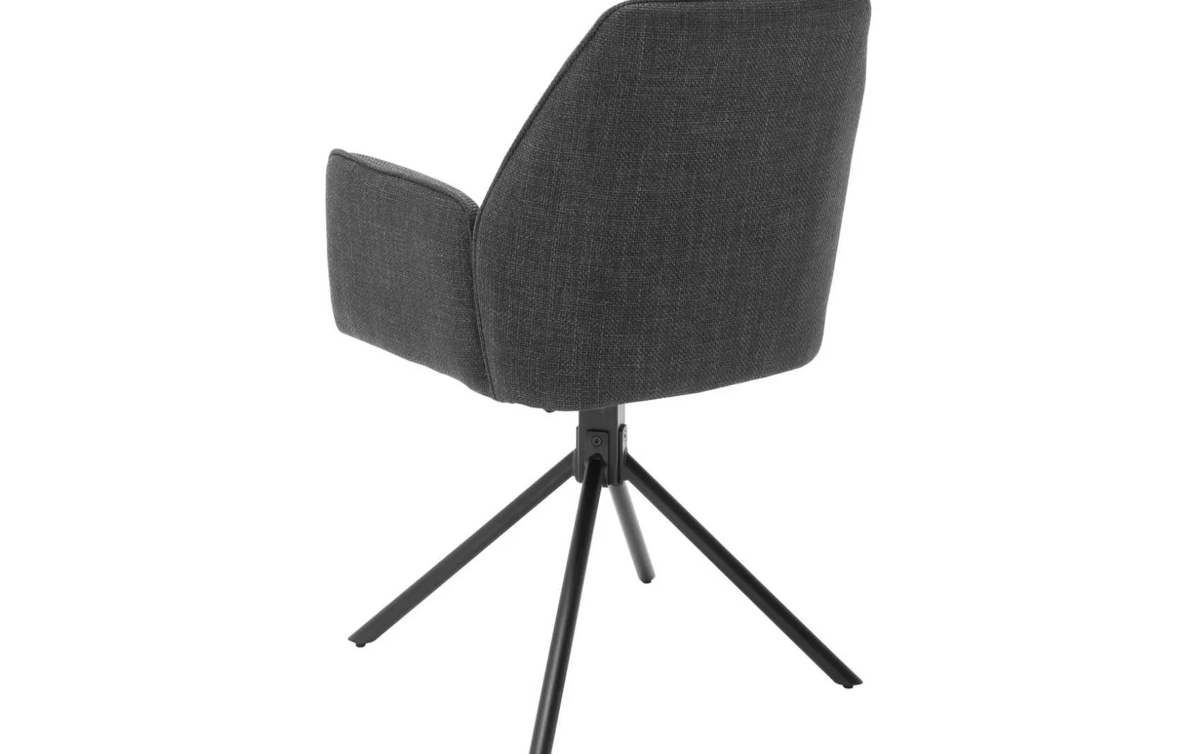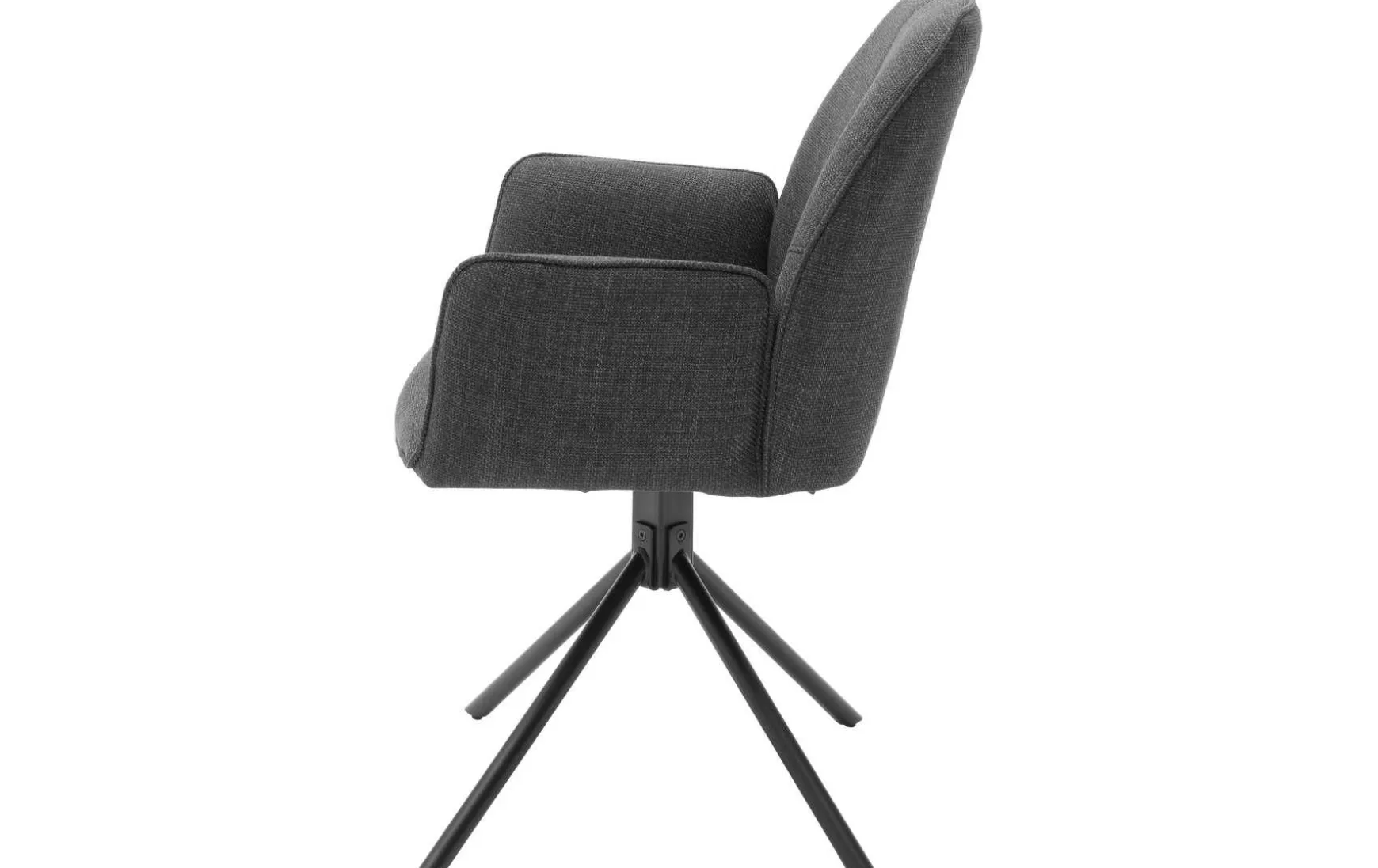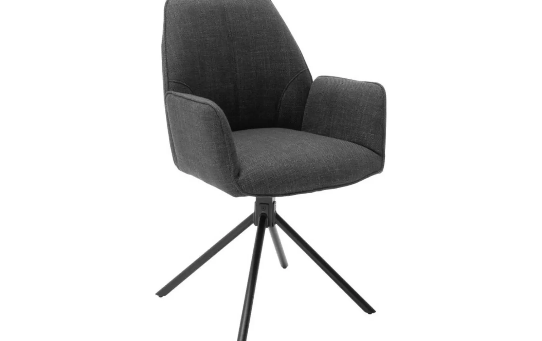 Dieser moderne Esszimmerstuhl vereint Komfort, Funktion und stilvolles Design. Mit weichem Sitzkomfort, Armlehnen und einem hochwertigen Stoffbezug in Anthrazit lädt er zu entspannten Stunden am Esstisch ein. Besonders praktisch: Der Stuhl ist 180 Grad drehbar und verfügt über eine Rückstell-Nivellierung, sodass er nach dem Aufstehen automatisch in seine Ausgangsposition zurückkehrt. Das stabile Metallgestell in matter Optik sorgt für Langlebigkeit und Stabilität. Mit einer Belastbarkeit von bis zu 120 kg ist der Stuhl robust und alltagstauglich – perfekt für modernes Wohnen.