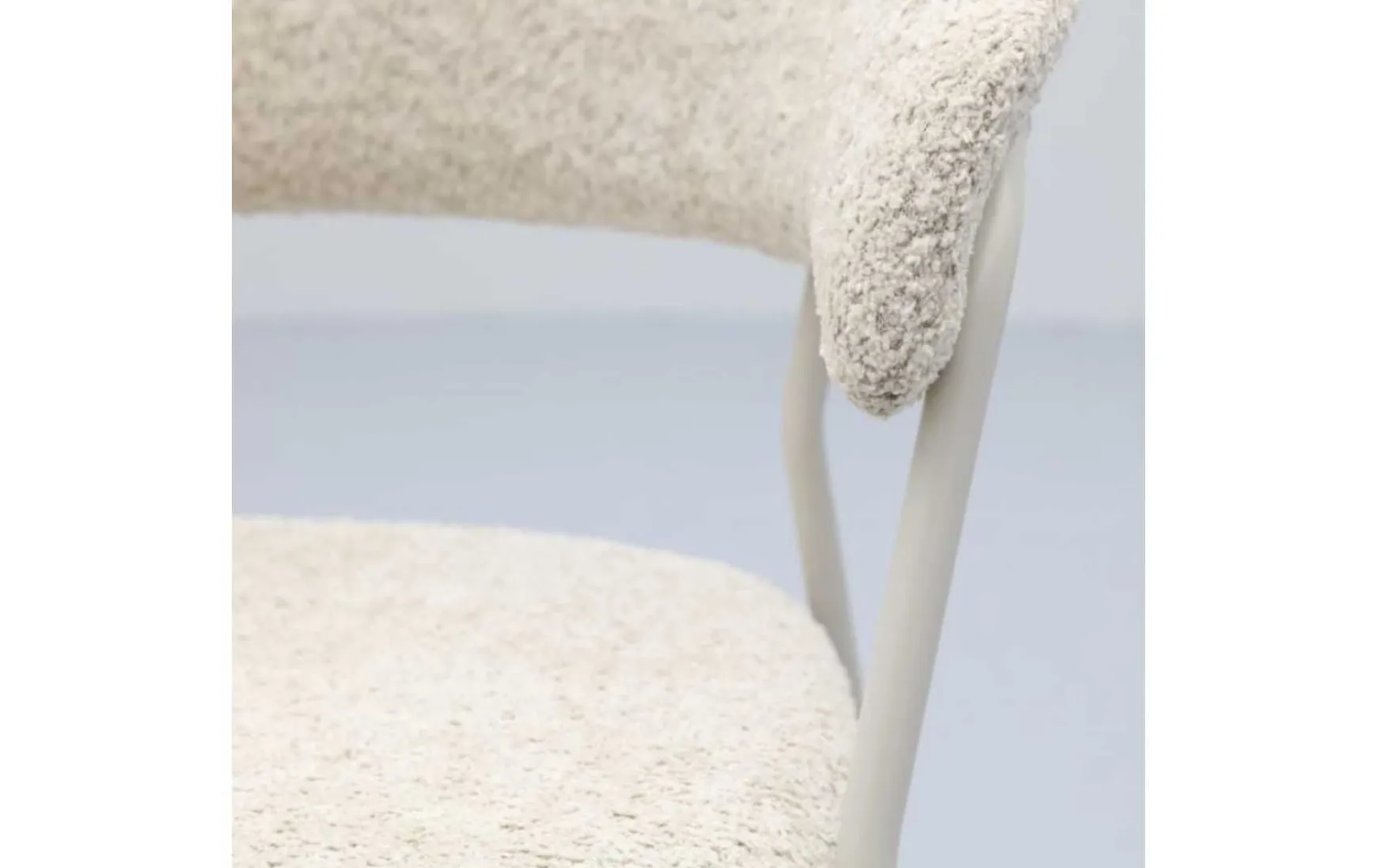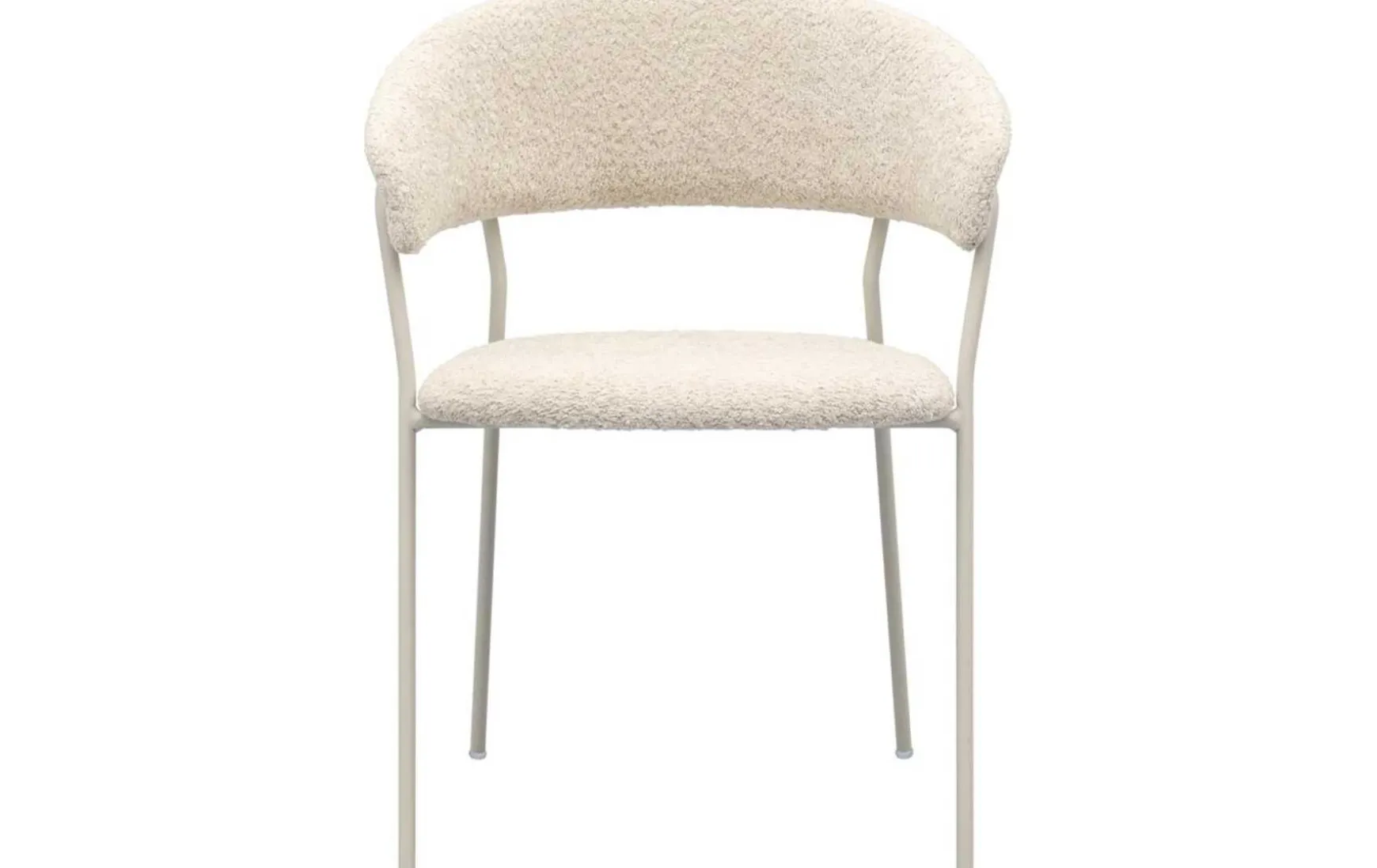 Der Armlehnstuhl Zeri überzeugt durch skandinavisches Design, hohen Sitzkomfort und eine moderne, natürliche Farbgebung. Der weiche Bouclé-Stoff in Beige verleiht dem Stuhl eine wohnliche Ausstrahlung und lädt zum entspannten Sitzen ein. Die komfortable Schaumstoffpolsterung sowie die integrierten Armlehnen sorgen für angenehmen Halt – ideal für lange Abende am Esstisch oder als stilvoller Akzent im Wohnbereich. Das stabile Metallgestell in Beige unterstreicht den modernen Look und gewährleistet Standfestigkeit. Dank vormontiertem Lieferzustand ist der Stuhl schnell einsatzbereit.
