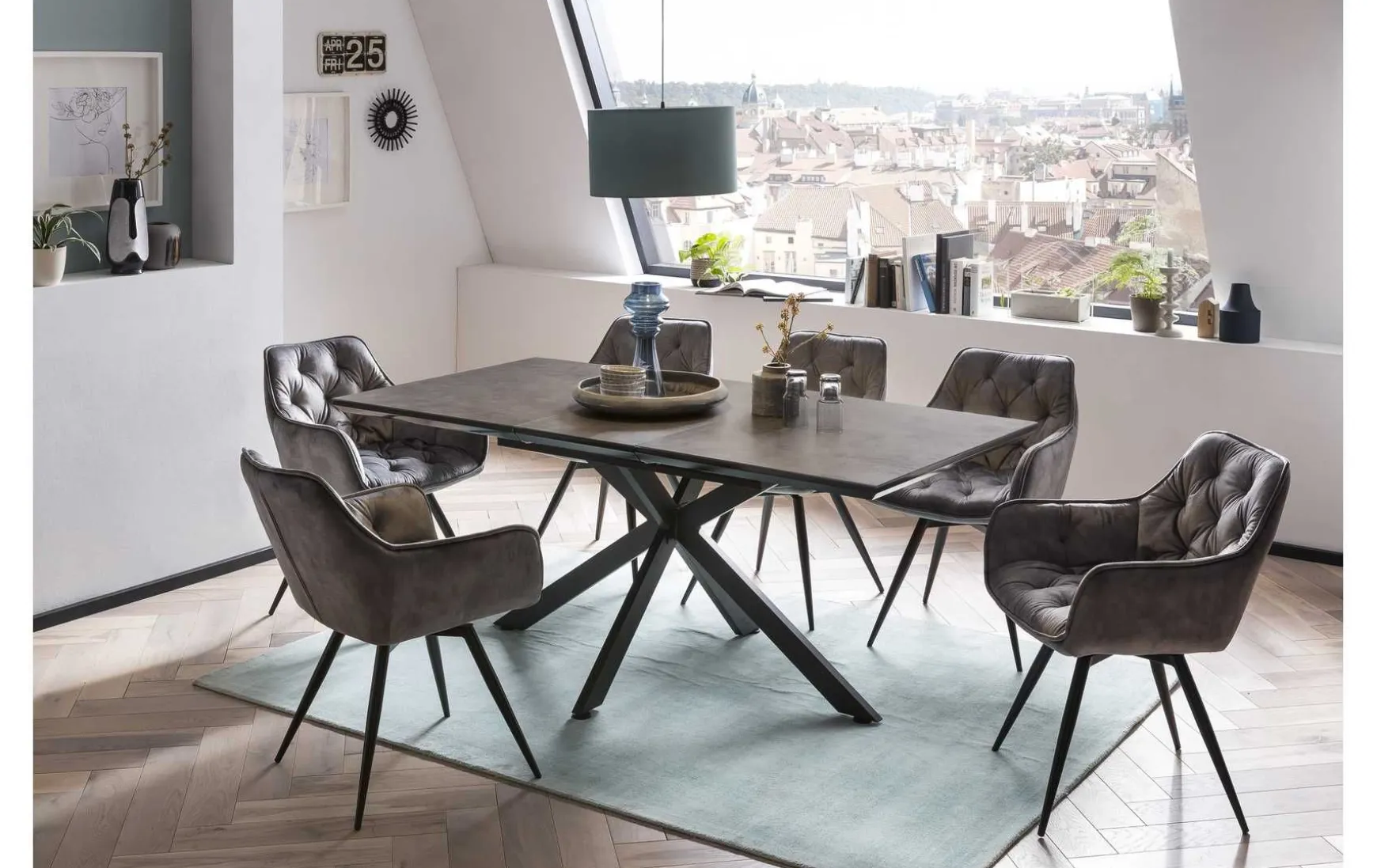 - Anmerkungen: Tischplatte ausziehbar mit synchronauszugund arretierung. Tischplatte mit schweizer Kante und Glasplatte in Keramikoptik. innenliegende Einlegeplatte