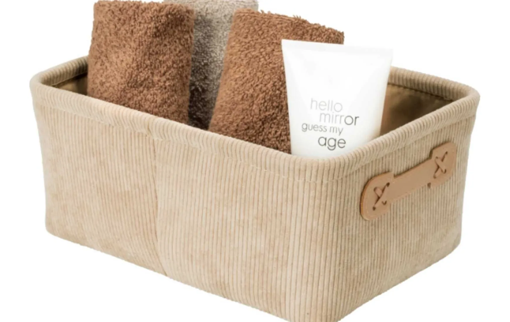 Dieser Badezimmer-Korb schafft spielend Ordnung und Gemütlichkeit im Badezimmer. Auch für das Gäste-WC ist der Aufbewahrungskorb aus 100 % Polyester eine praktische Möglichkeit, etwa Gästehandtücher bereitzuhalten und ansprechend zu drapieren. Die Optik des weichen Cord-Designs mit seiner typischen Rippenstruktur sorgt für Behaglichkeit und bringt mit seiner naturnahen Farbgebung in beige Wärme und ein modernes Design ins Bad. Zum optischen Highlight wird der elegante Badkorb auch in anderen Räumen und kann zum Beispiel für Uhren, Krawatten, Socken und vieles mehr genutzt werden.