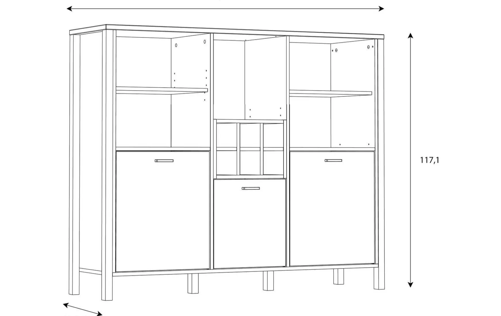 - Viel Stauraum durch drei Türen