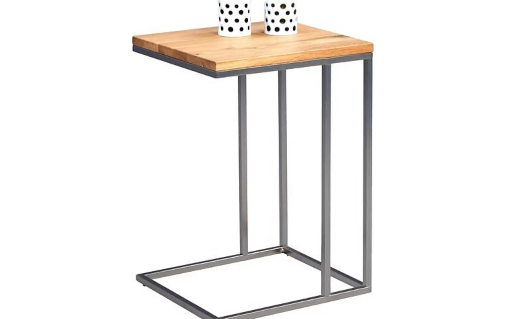 Dieser moderne Beistelltisch überzeugt durch die hochwertige Kombination aus natürlicher Wildeiche und markantem Metall. Die quadratische Tischplatte aus massivem, stabverleimtem Wildeichenholz ist 22 mm stark und geölt, wodurch die natürliche Maserung besonders schön zur Geltung kommt. Das schwarz matte Metallgestell sorgt für Stabilität und unterstreicht den modernen, zeitlosen Look. Mit seinen kompakten Maßen eignet sich der Beistelltisch ideal als praktische Ablage neben Sofa oder Sessel und fügt sich harmonisch in moderne Wohnkonzepte ein.