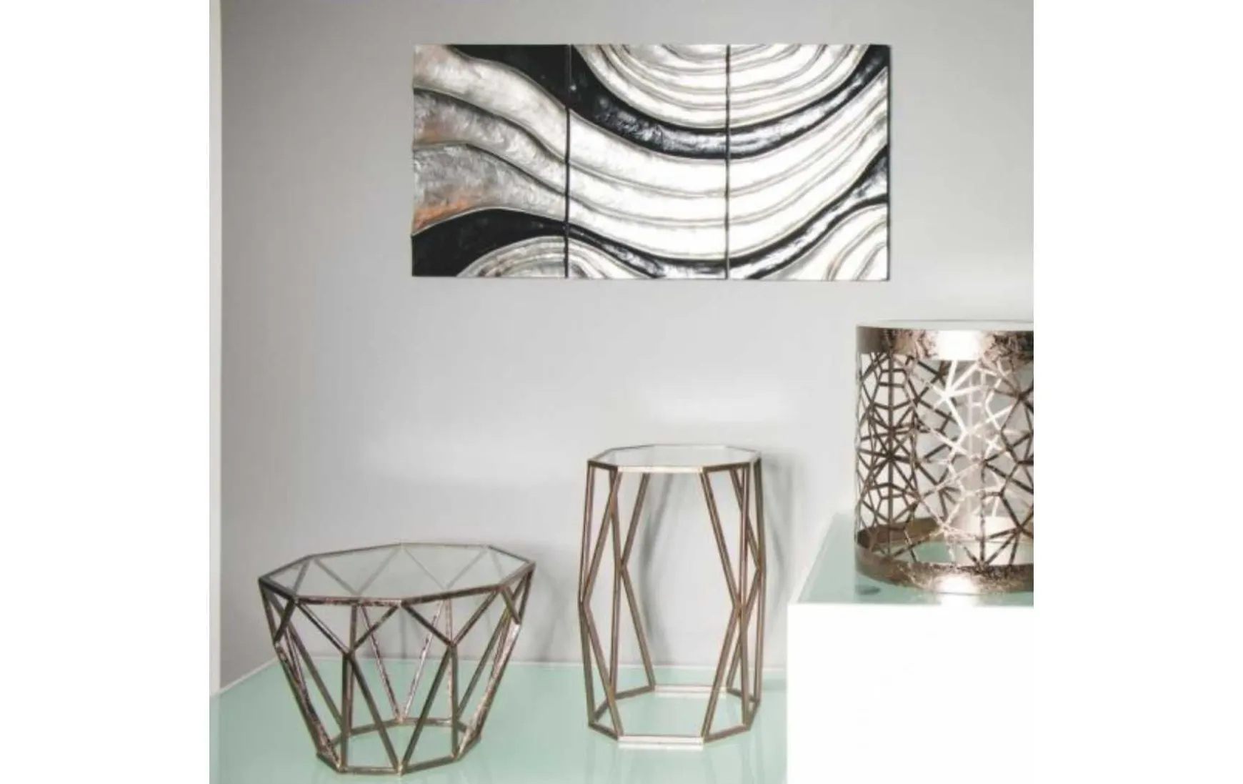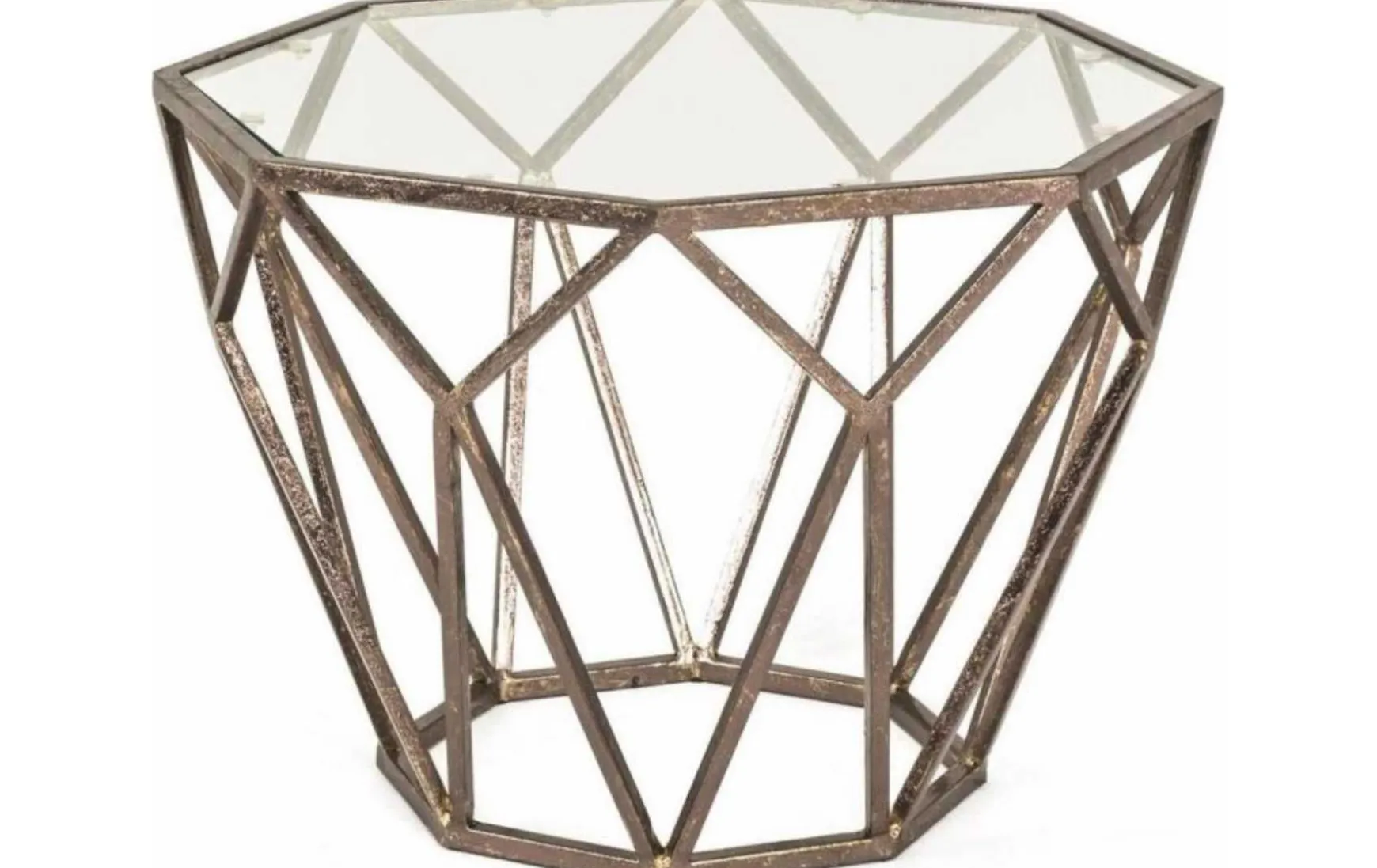 Stabiler und ungewöhnlicher Beistelltisch der Firma Haku. Das Metall ist Antikbronze lackiert und in einer sehr interessanten Form hergestellt. Die Glasplatte ist aus Sicherheitsglas und ist 8 mm stark. Dieser schöne Beistelltisch für Ihr Wohnzimmer hat viel Ablagefläche und besticht durch seine äußerst dekorative Form.