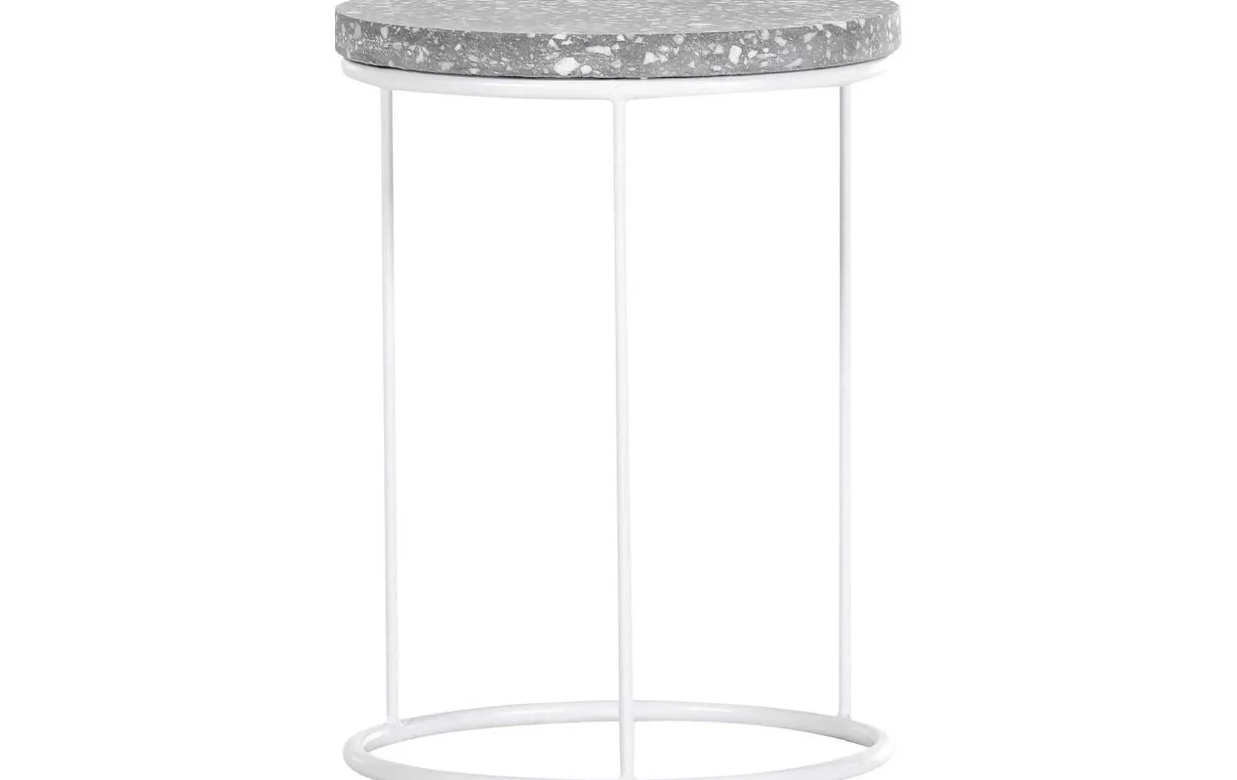 Mit seiner filigranen Optik ergänzt der Beistelltisch Ihre eigenen vier Wände. Optisch begeistert er mit seiner runden Tischplatte in Steinoptik, die das schlichte Metallgestell harmonisch komplettiert. Der Tisch findet mit seinen kompakten Maßen in Wohnräumen jeder Größe problemlos einen Platz. Er lässt sich sowohl als Couchtisch oder als Abstellmöglichkeit für Blumen und Skulpturen nutzen.