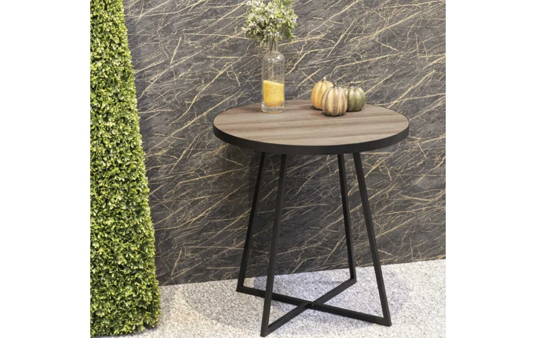 Sehr schöner Beistelltisch mit einem schwarz lackiertem Metallgestell und einer pflegeleichten MDF-Ablage. Die Platte ist rund und erscheint ganz edel in Eiche dunkel. Das sieht Klasse aus und passt zum modernen Wohnstil. Ein Beistelltisch, der in jedem Zimmer gebraucht werden kann.