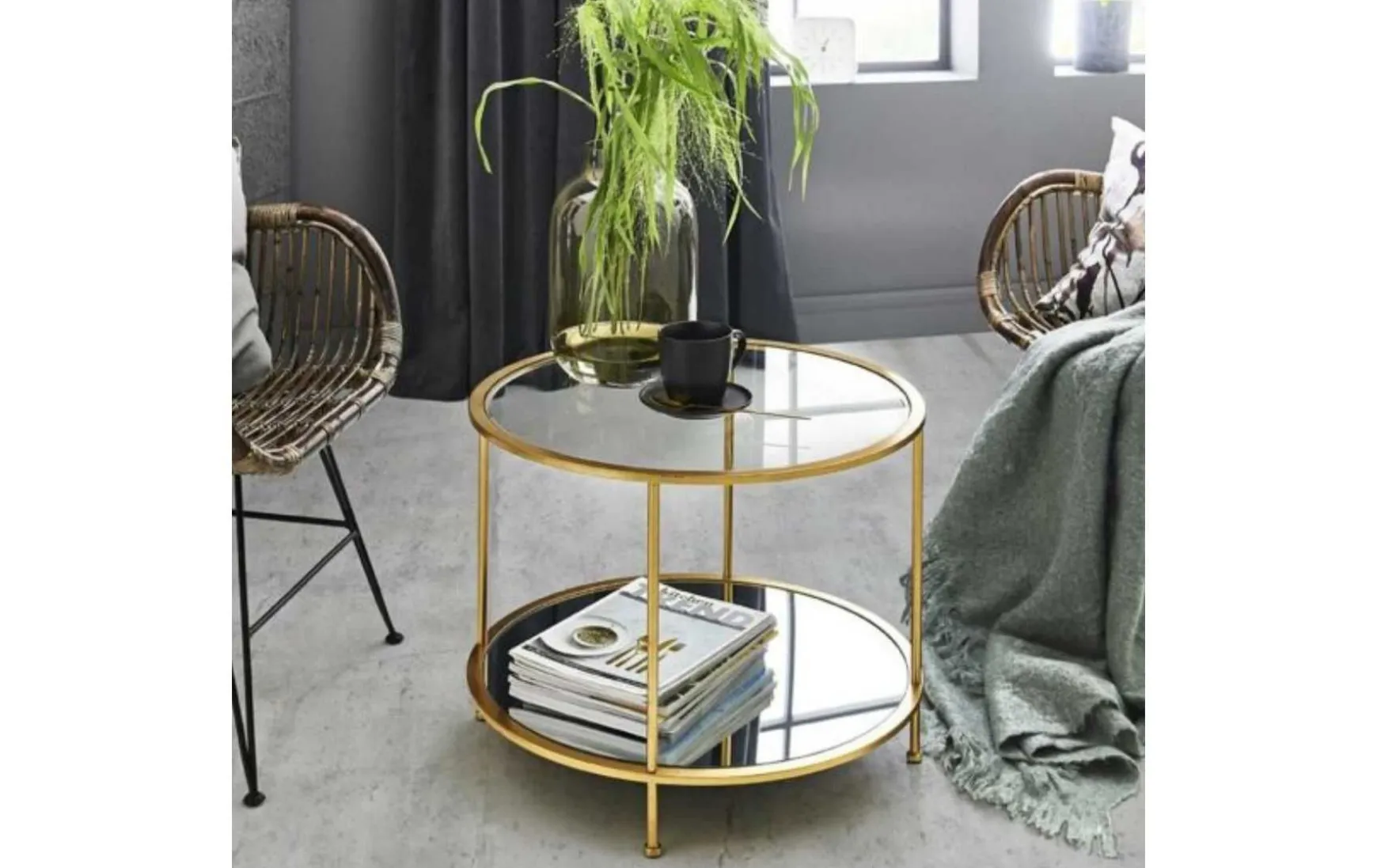 Dieser Beistelltisch mit Glasplatte in goldfarben ist die perfekte Ergänzung für Ihr Zuhause. Mit seinen Maßen von ca. 60,0 x 60,0 x 40,0 cm ist er kompakt und vielseitig einsetzbar. Der Tisch besticht durch seine elegante goldene Farbe, die jedem Raum einen Hauch von Luxus verleiht. Die runde Tischplatte aus glasklarem Glas ist nicht nur schön anzusehen, sondern auch praktisch und pflegeleicht. Das Metallgestell in goldener Farbe sorgt für Stabilität und eine moderne Optik. Mit einer Tragfähigkeit von ca. 10kg können Sie auf dem Beistelltisch problemlos Dekorationen, Getränke oder Bücher abstellen. Trotzdem ist der Tisch mit einem Gewicht von nur 7,38kg leicht und einfach zu transportieren.