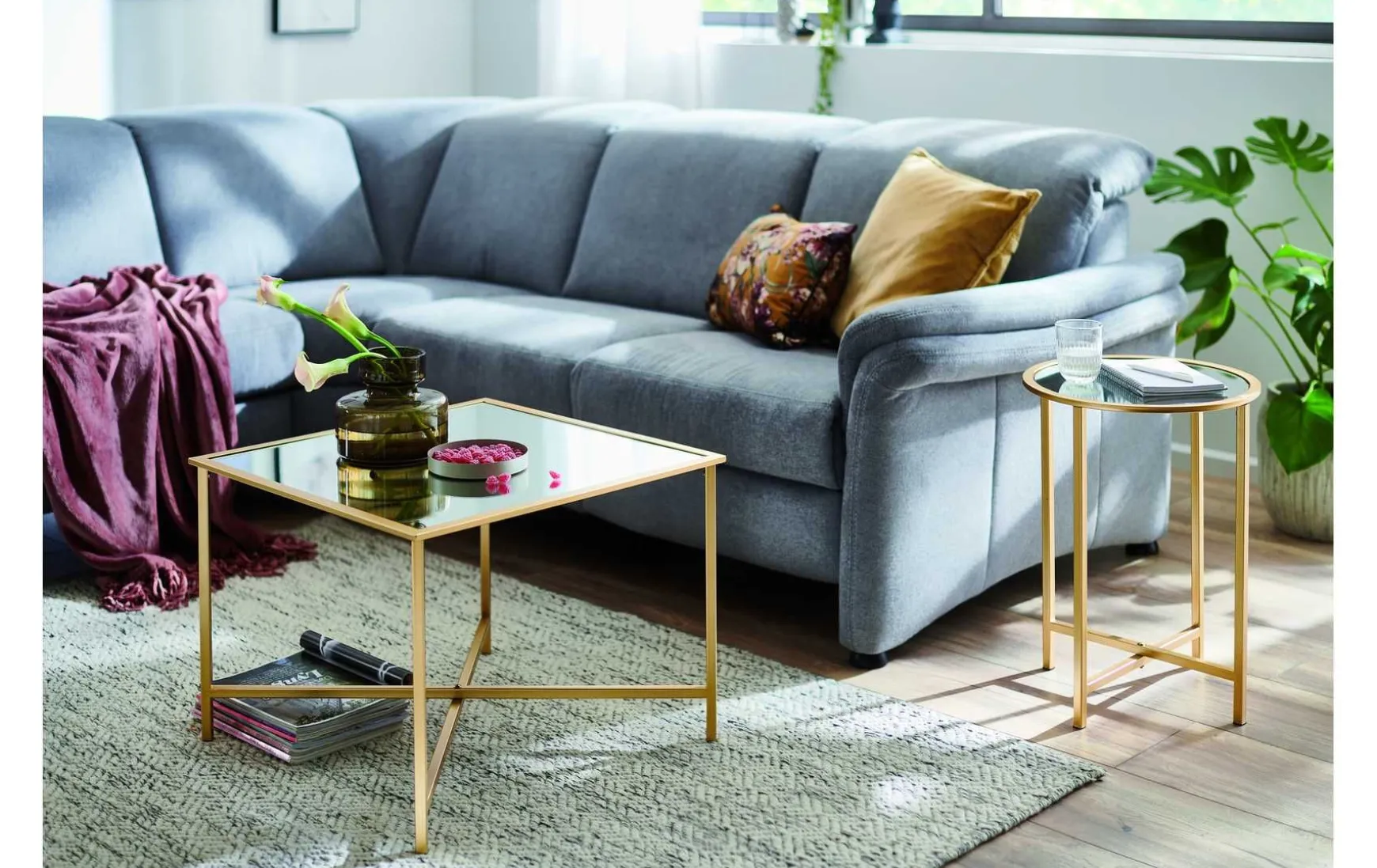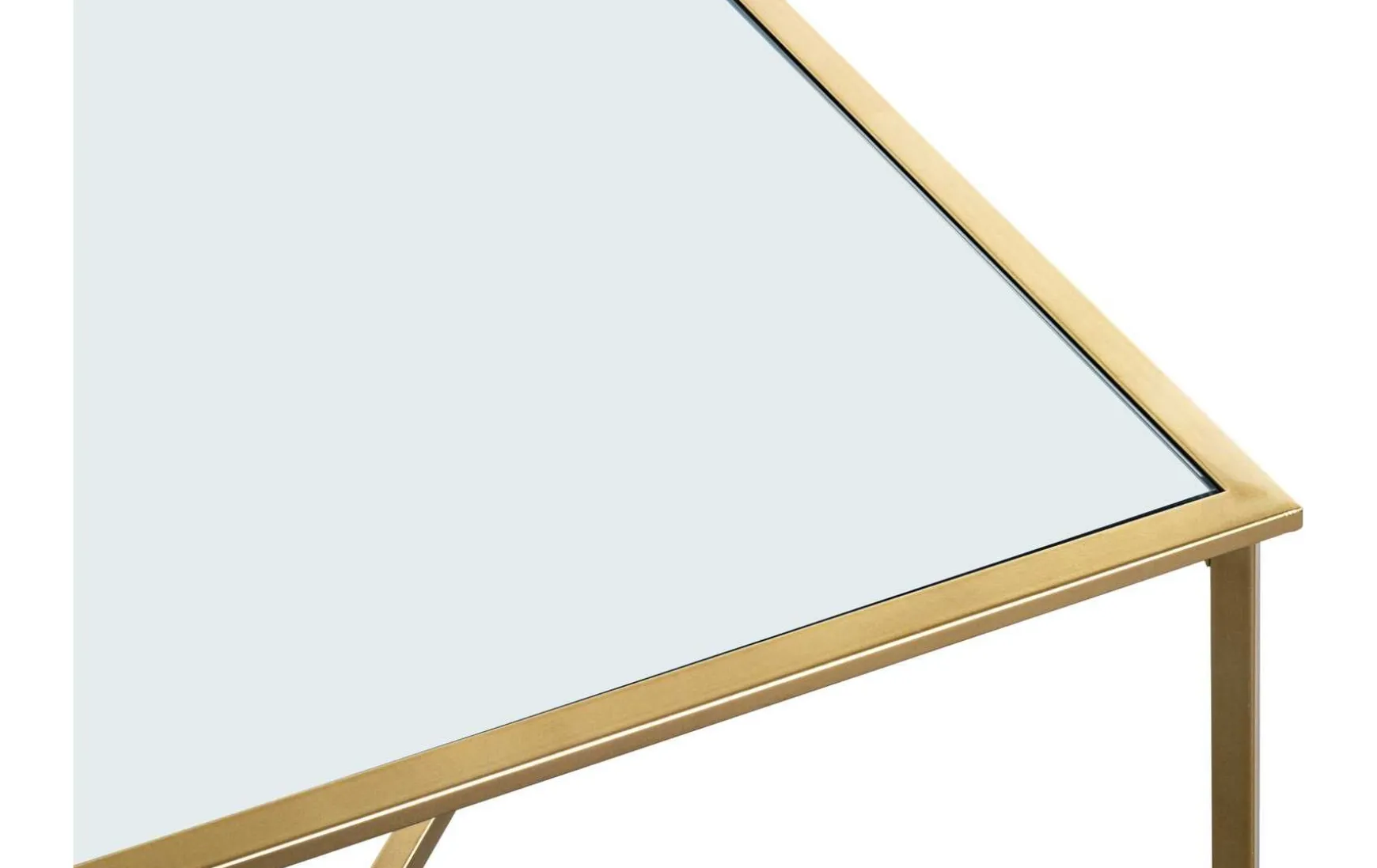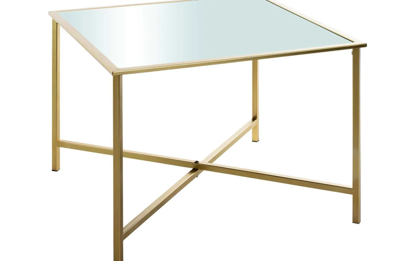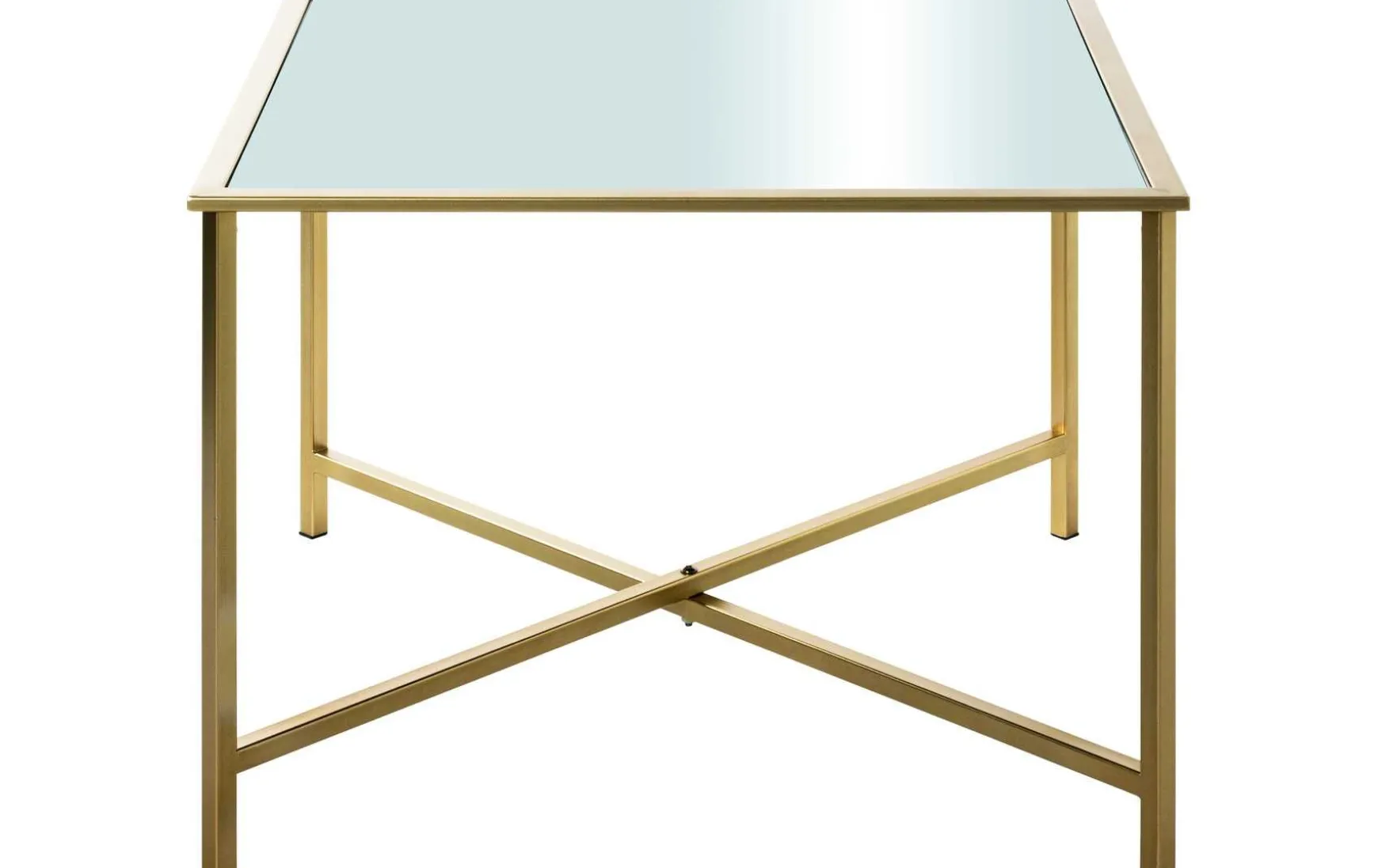Mit seinen Maßen von 60x60x45cm eignet sich dieser Beistelltisch perfekt, um ihn neben Ihrem Sofa oder Ihrem Bett zu platzieren. Er bietet genügend Platz für Ihre persönlichen Gegenstände und verleiht zugleich Ihrem Raum einen stilvollen Akzent. Der Tisch besteht aus einer rechteckigen Spiegel-Tischplatte, die ihm ein modernes und luxuriöses Aussehen verleiht. Das goldene Metallgestell sorgt für Stabilität und verleiht dem Tisch eine edle Note.