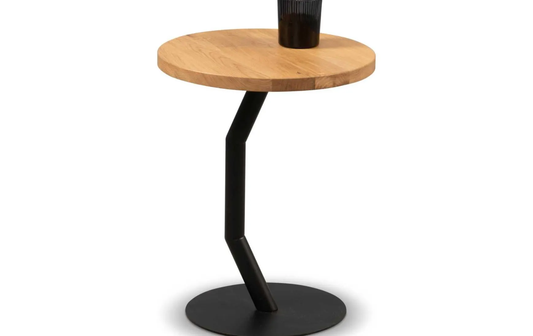 Dieser moderne Beistelltisch überzeugt durch die gelungene Kombination aus natürlicher Wildeiche und einem stabilen Metallgestell. Die runde Tischplatte aus massivem, geöltem Wildeichenholz bringt Wärme und Natürlichkeit in Ihren Wohnraum, während das schwarze Metallgestell für einen zeitgemäßen, industriellen Akzent sorgt. Mit seiner kompakten Größe eignet sich der Tisch ideal als stilvolle Ablage neben Sofa, Sessel oder Bett.