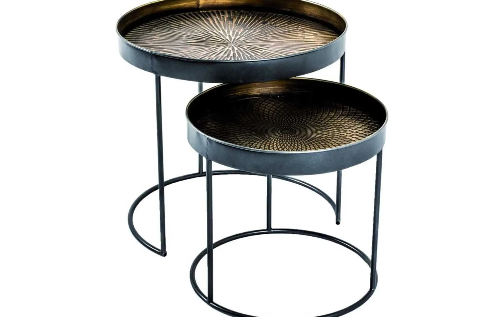 Dieses moderne Beistelltisch-Set in Schwarz und Kupfer setzt stilvolle Akzente in Ihrem Wohnraum. Die elegante Farbkombination aus schwarzem Metallgestell und kupferfarbener Tischplatte verleiht den Tischen einen edlen, zeitgemäßen Look. Dank der zwei unterschiedlichen Größen lassen sich die Beistelltische flexibel einsetzen – einzeln, zusammen arrangiert oder platzsparend ineinandergeschoben. Die pflegeleichte Metalloberfläche macht das Set besonders alltagstauglich und vielseitig einsetzbar.