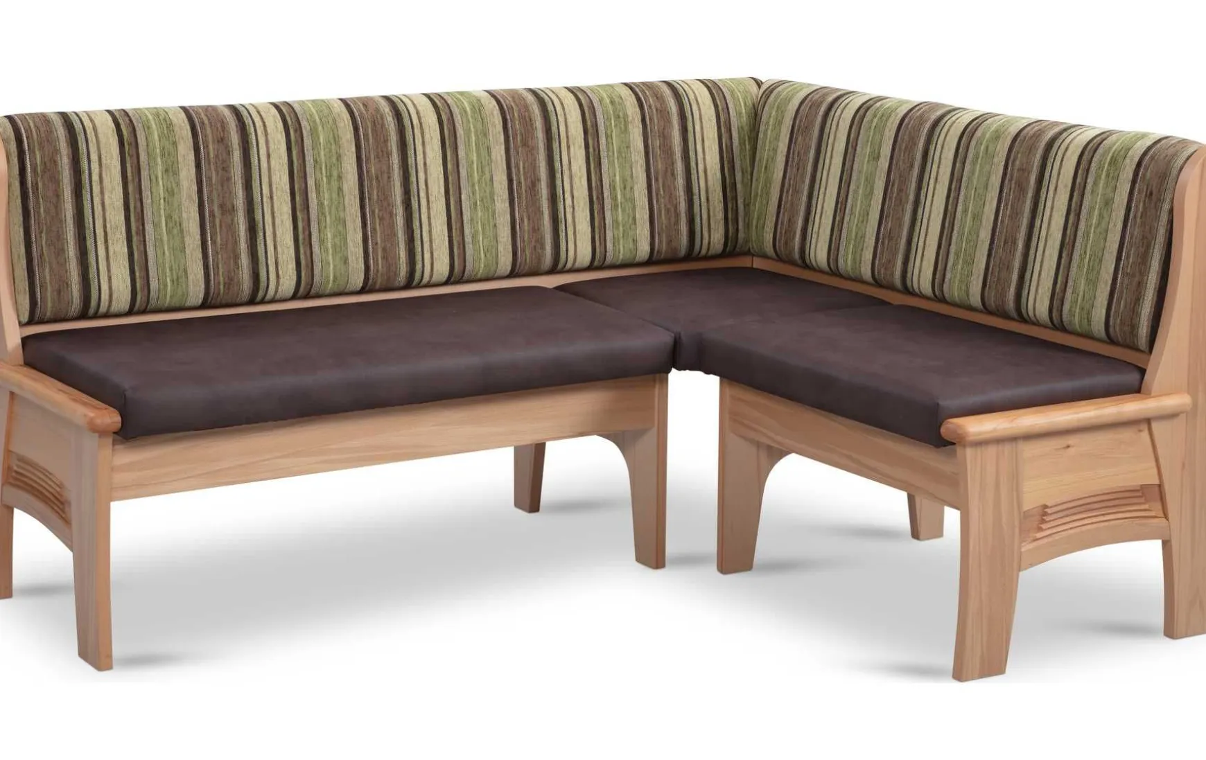 Die bequeme Eckbank mit Truhe aus Kernbuche in natürlicher Lackierung ist ein zeitloses und elegantes Möbelstück für Ihre Küche oder Esszimmer. Der Sitzbezug in Braun und die gestreifte Rückenlehne verleihen der Eckbank einen klassischen und gemütlichen Look, der zu verschiedenen Einrichtungsstilen passt. Mit einem Schenkelmaß von ca. 177,5 cm auf der linken Seite und ca. 137,5 cm auf der rechten Seite bietet die Eckbank ausreichend Platz für mehrere Personen. Die Sitzhöhe von ca. 45 cm sorgt für eine angenehme Sitzposition und ermöglicht entspannte Mahlzeiten oder gesellige Abende mit Familie und Freunden. Die integrierte Truhe unter der Sitzfläche bietet zusätzlichen Stauraum für Kissen, Decken oder andere Utensilien und sorgt für Ordnung in Ihrem Wohnbereich. Die hochwertige Verarbeitung und das robuste Material garantieren eine lange Lebensdauer und machen die Eckbank zu einem langlebigen Begleiter in Ihrem Zuhause.